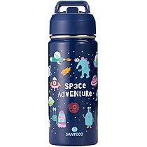 SANTECO Edelstahl Trinkflasche 1,2l - Doppelwandig Mit Strohhalm & Tragegurt