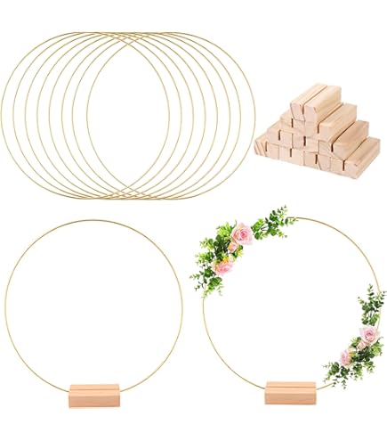 Total vielseitiges Bastelset für kreative Projekte! Enthält 5x 15cm und 5x 25cm Metallringe plus Holzsockel mit Doppelrille. Perfekt für Kränze, Traumfänger oder Wandbehänge.