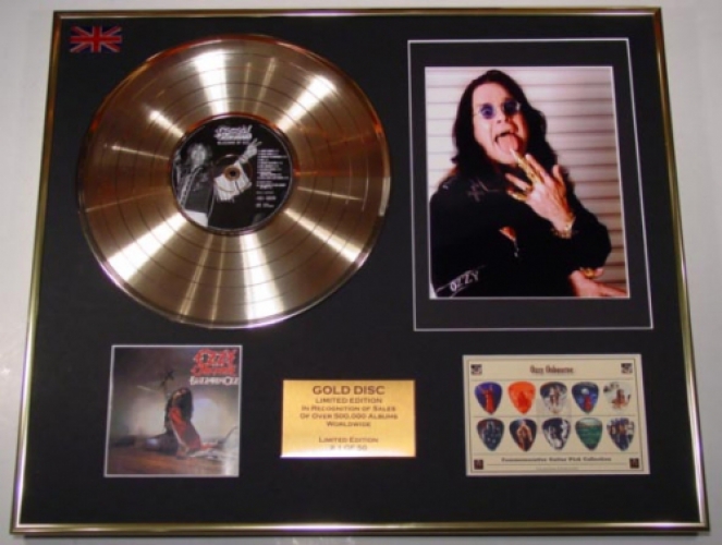 Ozzy Osbourne Limited Edition - Mini Metall Gold Disc & Foto Display Mit Zertifikat
