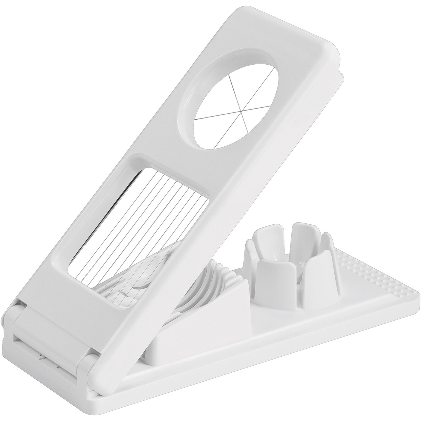 Dieser Westmark Schneider ist ein echter Küchen-Allrounder! Mit drei verschiedenen Einsätzen schneidest du nicht nur Eier perfekt in Stücke, Scheiben oder Hälften, sondern auch Mozzarella, Erdbeeren, Pilze und andere weiche Lebensmittel. Die straff gespannten Edelstahldrähte sorgen für saubere Schnitte ohne dass etwas verrutscht. Besonders praktisch: Die Einsätze sind stapelbar und nehmen in der Küchenschublade kaum Platz weg. Der passende Untersatz ermöglicht komplettes Durchschneiden ohne Rückstände. Aus hochwertigem Kunststoff (PP) und rostfreiem Edelstahl gefertigt - lebensmittelecht und langlebig. In dekorativem Rot/Anthrazit/Weiß passt er in jede Küche. Perfekt für das Frühstücksei, für Party-Häppchen oder die Zubereitung von Salaten. Einfach zu reinigen - bitte nur von Hand waschen, nicht in die Spülmaschine! Mit 5 Jahren Garantie von Westmark - da weißt du, dass du Qualität kaufst. Mach deine Küchenarbeit einfacher und effizienter mit diesem cleveren Helfer!