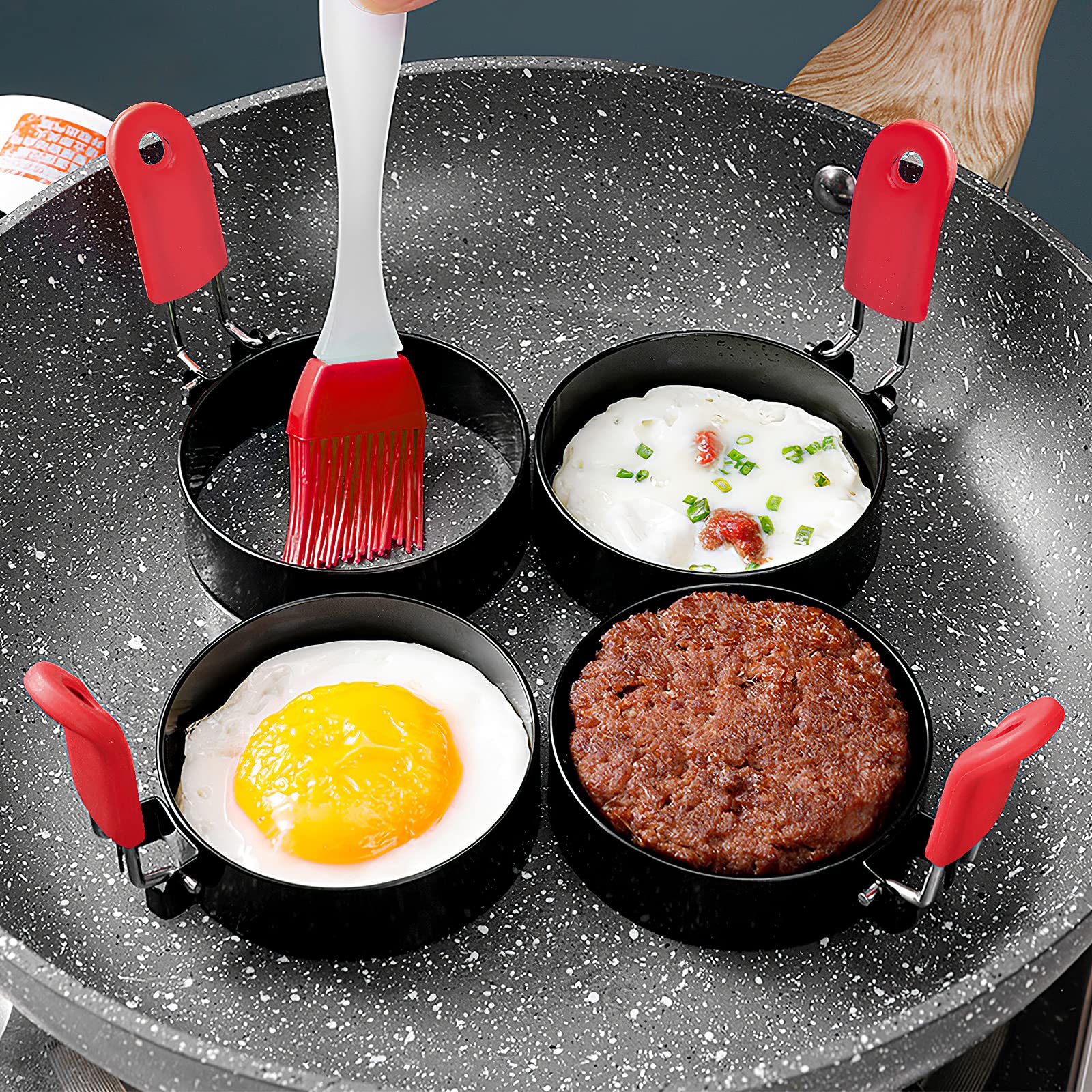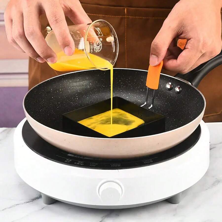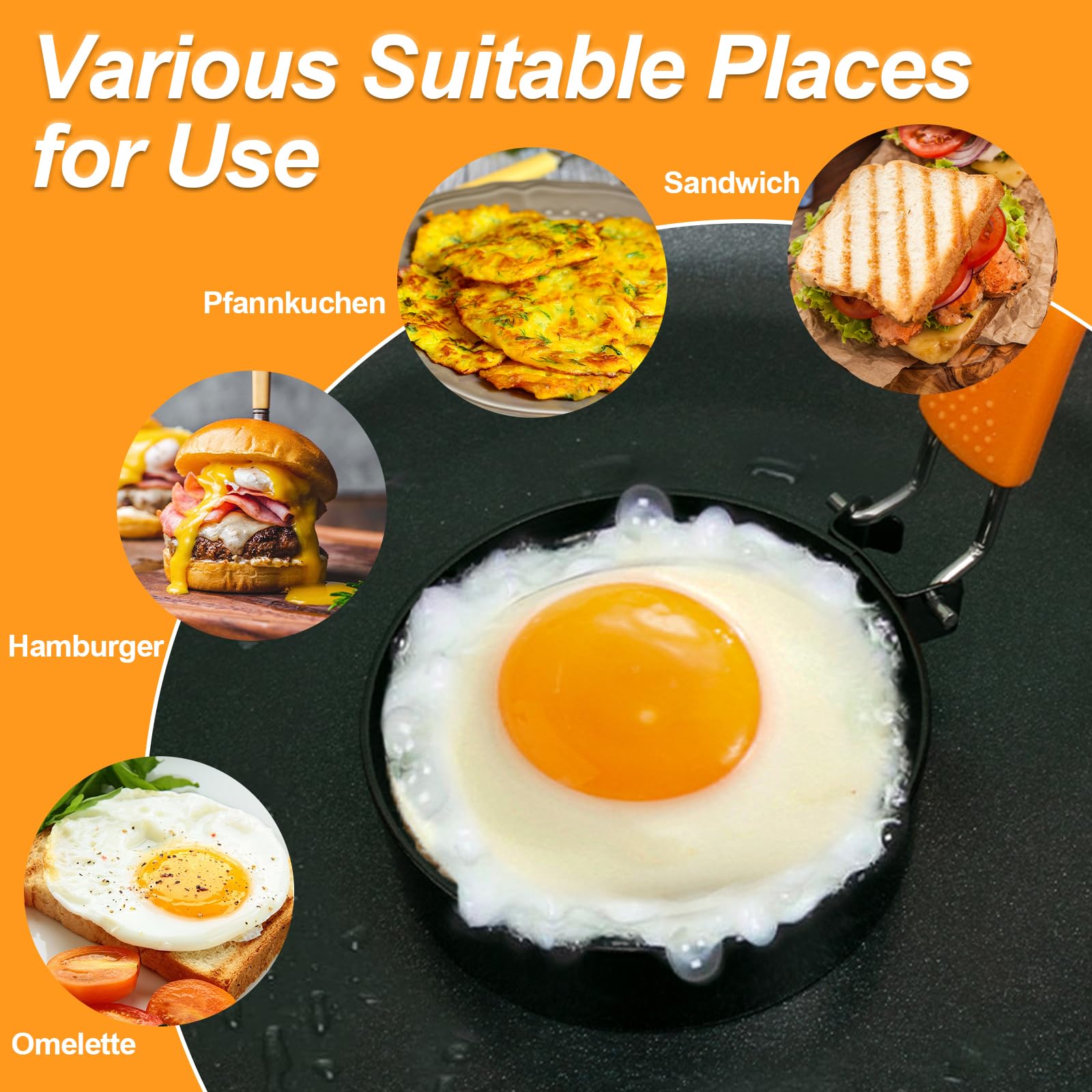 Perfekte Spiegeleier ganz einfach! Diese 6 Edelstahl-Formen machen's möglich. Mit Antihaft-Beschichtung - nichts klebt mehr an! Ca. 13,5x13,5x8cm - ideal für jede Pfannengröße! Faltbarer Hitzeschutzgriff - verbrenn dir nicht die Finger! Für Spiegeleier, Omeletts, Pfannkuchen - total vielseitig! Einfach zu reinigen - spülmaschinenfest! Macht jedes Frühstück zum Highlight! Auch für Burger-Brötchen oder Mini-Pfannkuchen! Super für kreative Köche und Frühstücks-Fans! Einfach in die Pfanne legen, Ei reinbraten - perfekte Form garantiert! Macht Kochen zum Spaß!