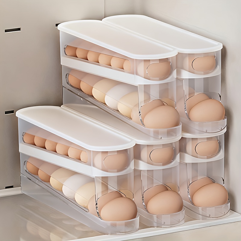 2 Stück 4-Ebenen Eierhalter Kühlschrank Organizer - Automatisches Rollsystem Für 60 Eier