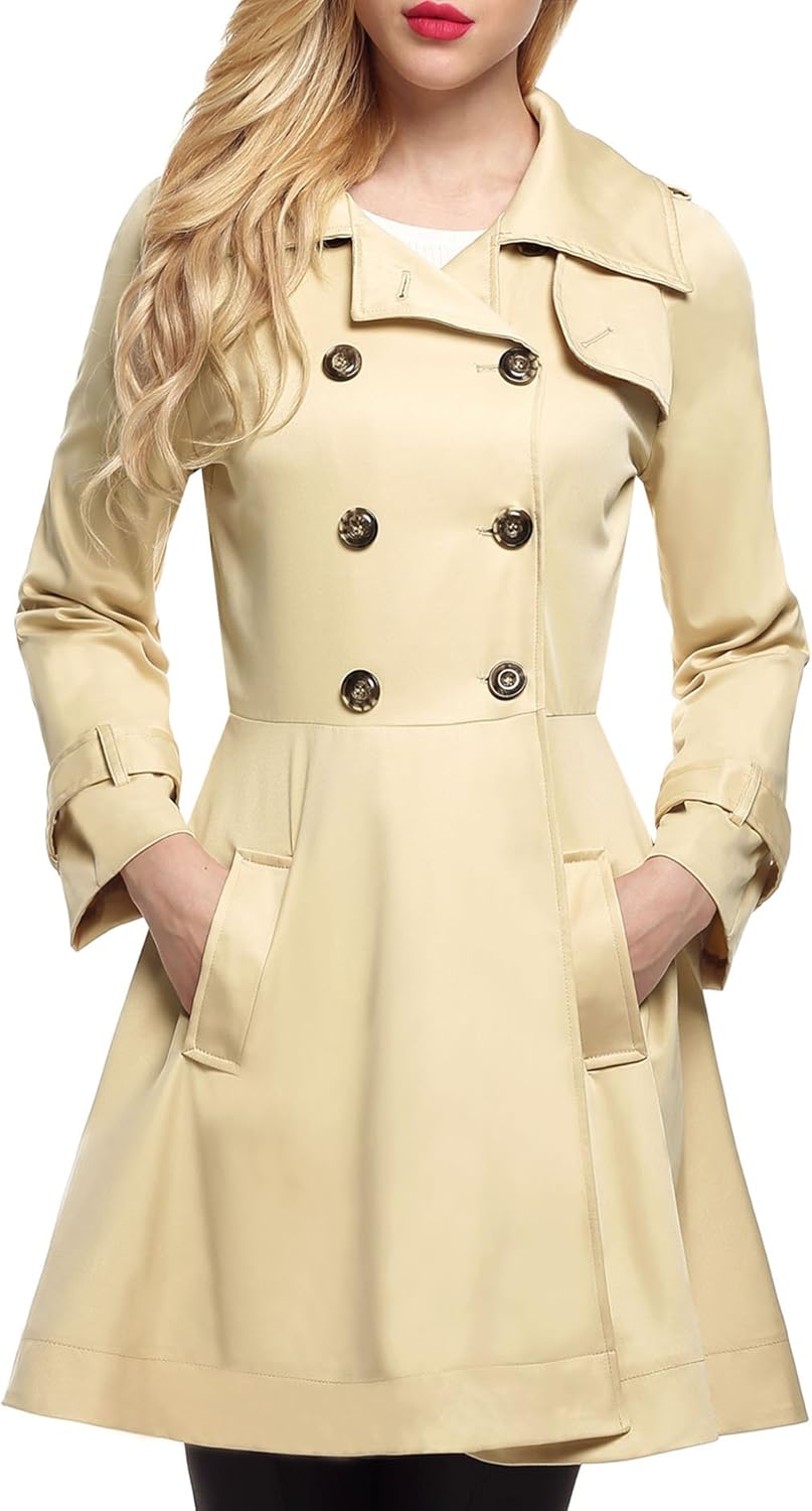 Xmiral Damen Trenchcoat Einfarbig - Lange Umlegekragen Jacke | Eleganter Winter Mantel Für Büro