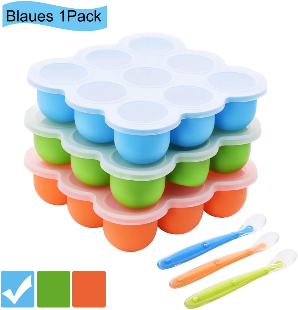 HI NATURE Babybrei Einfrierbehälter Set - 100% BPA-freies Silikon Mit 4 Löffeln