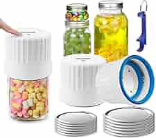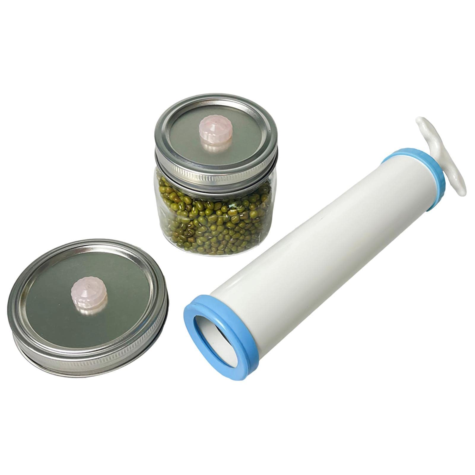 Im Set: 10 Versiegelungsbeutel (5 groß + 5 mittel), 10 Dichtungsdeckel, 2 Einmachglas-Adapter, Wein-Adapter, Aufblasnadeln und mehr! Alles was du brauchst!