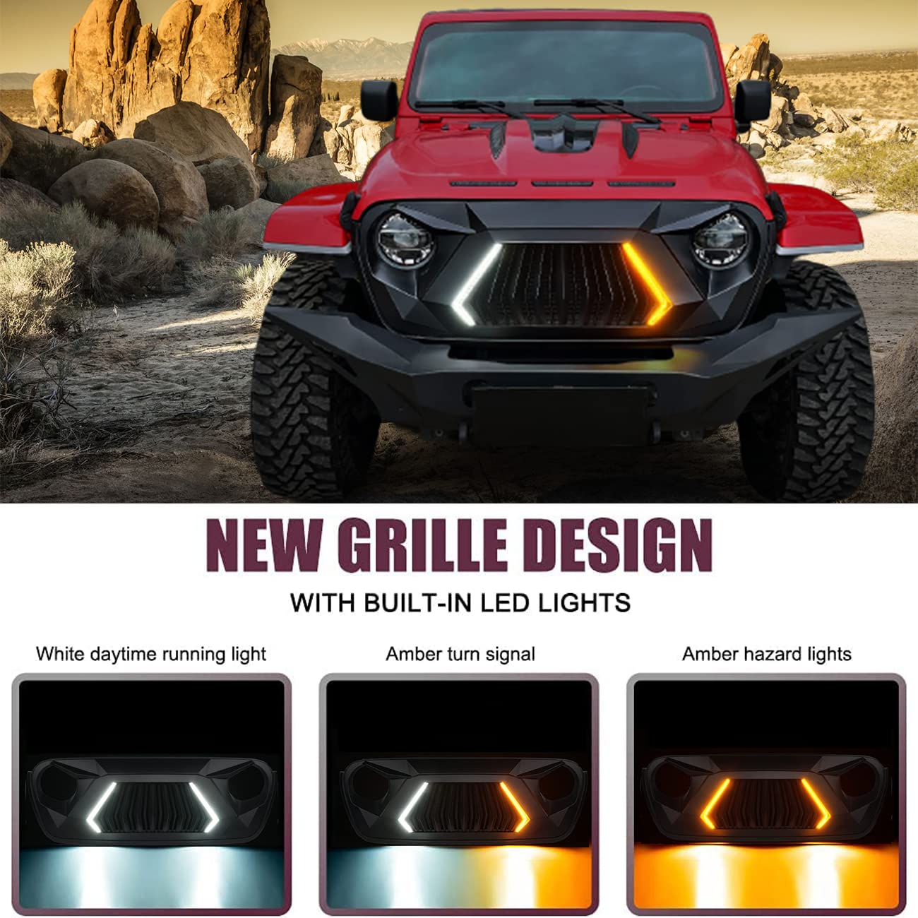 CKPEOR Frontgrill-Einsätze Für Jeep Wrangler JL 2024 - Schwarze Kühlergrill-Abdeckungen