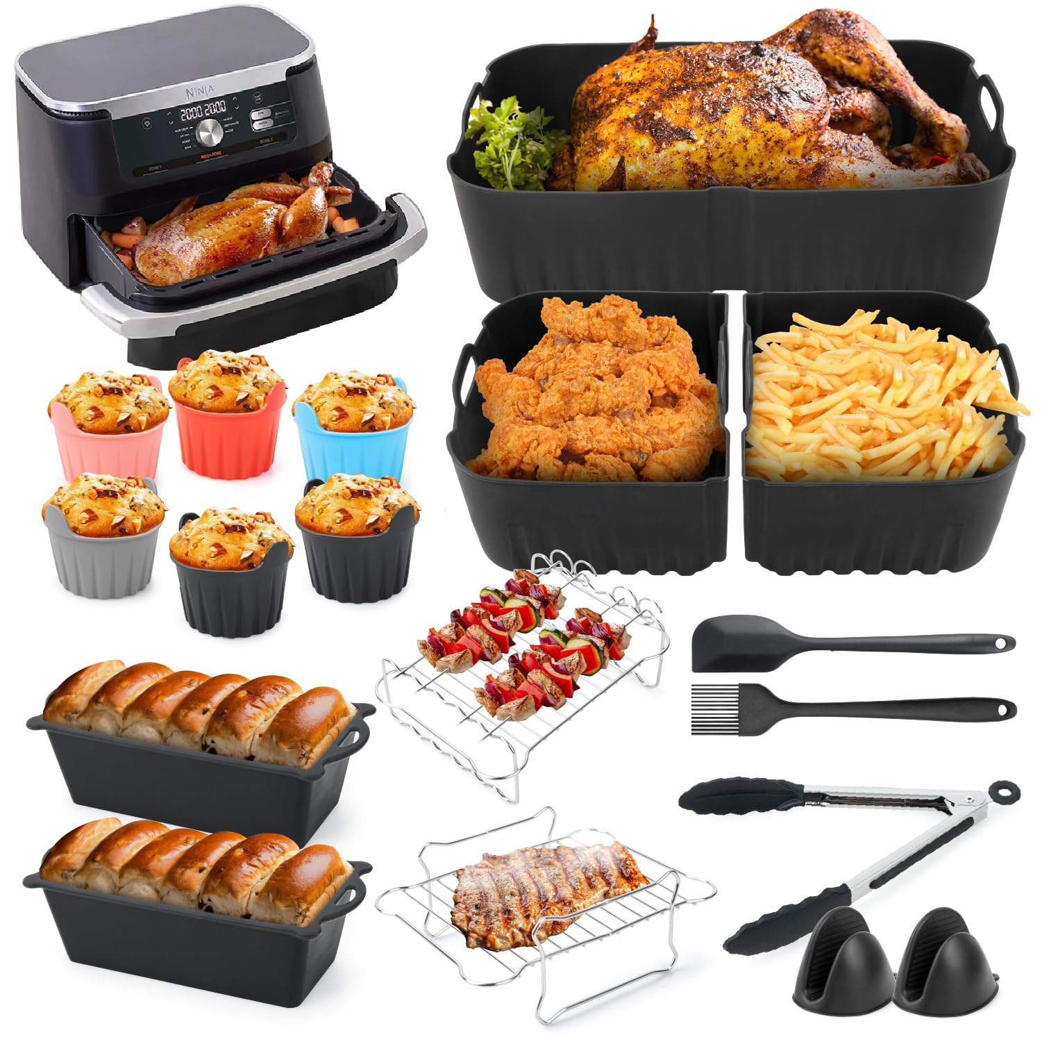 Ninja AF500EU Zubehör Set - Silikon Einsätze & Grillzubehör Für Foodi FlexDrawer