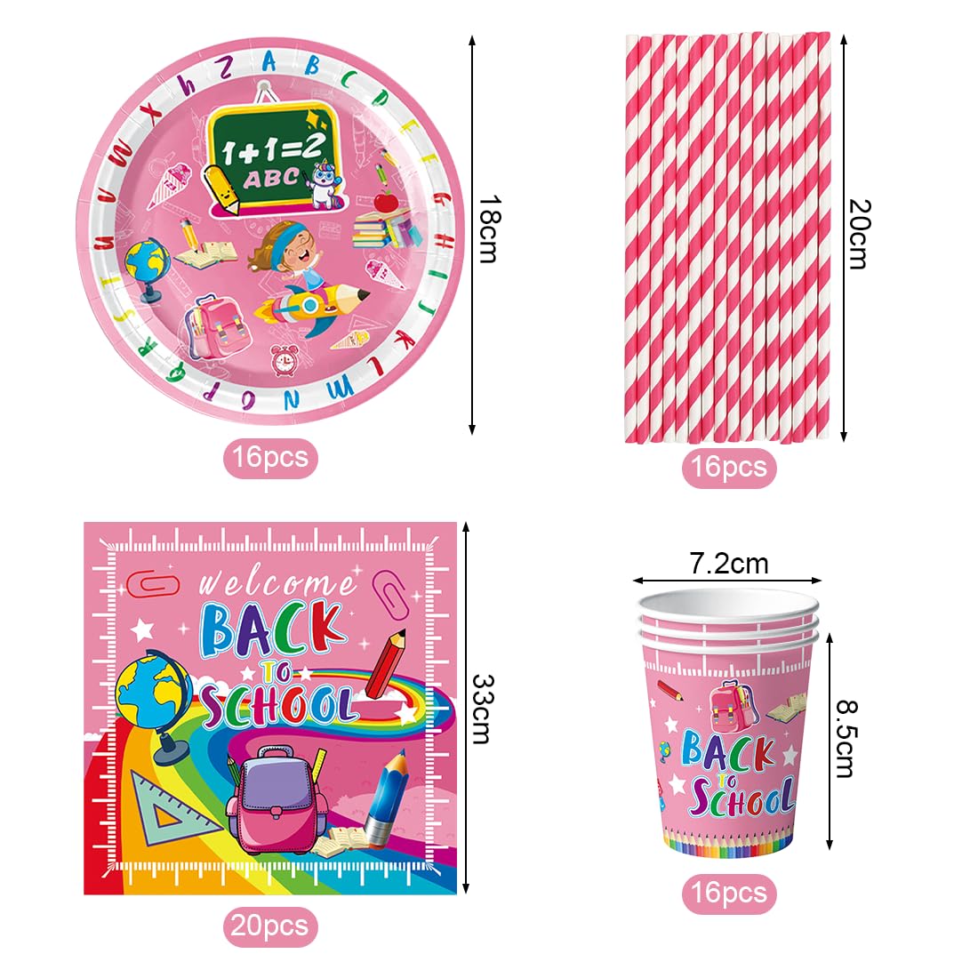 PARTY PARTY Einschulung Deko Set - Geschirr & Deko Für 16 Gäste Mit ABC Design