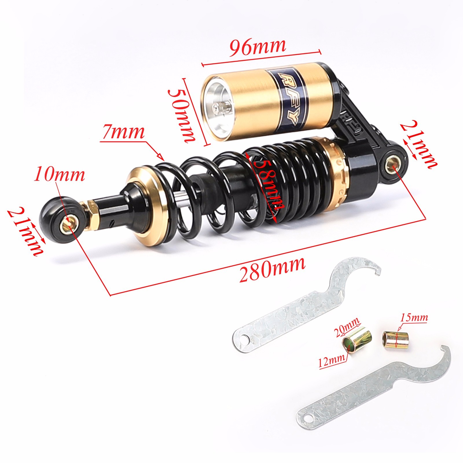 Dieser einstellbare Stoßdämpfer bringt dein Motorrad, ATV oder Go Kart auf das nächste Level! Mit 350mm Befestigungsabstand passt er für die meisten 50cc-250cc Maschinen. Aus CNC-Aluminiumlegierung und hochfestem Stahl - wasserdicht und rostfrei. 5 Stufen einstellbar, damit du je nach Straßenbedingung die perfekte Dämpfung findet. Gesamtlänge ca. 380mm, Federdurchmesser 10mm. Verbessert den Fahrkomfort und die Sicherheit deutlich. Perfekt für den Austausch, Upgrade oder Tuning deines originalen Dämpfers. Einfach montieren und sofort den Unterschied spüren! Ob auf der Straße oder im Gelände - mit diesem Qualitäts-Dämpfer machst du nichts falsch.