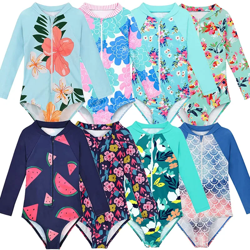 Mädchen Badeanzug Einteiler - Blumen Monokini Mit Spaghettiträgern