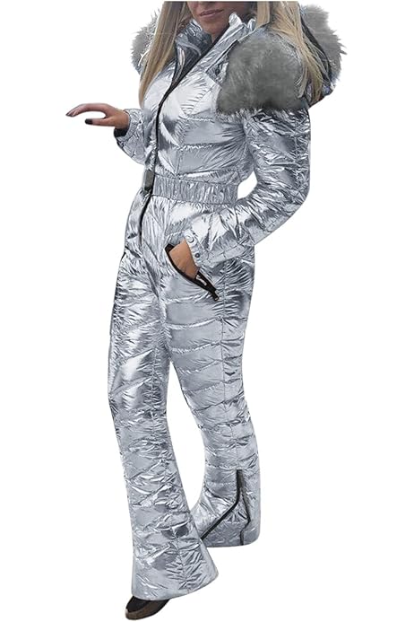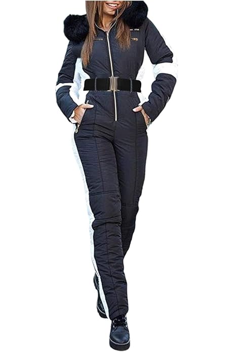 Damen Skianzug Einteiler - Wasserdicht Isolierter Schneeanzug Mit Pelzkappen Für Ski Und Snowboard