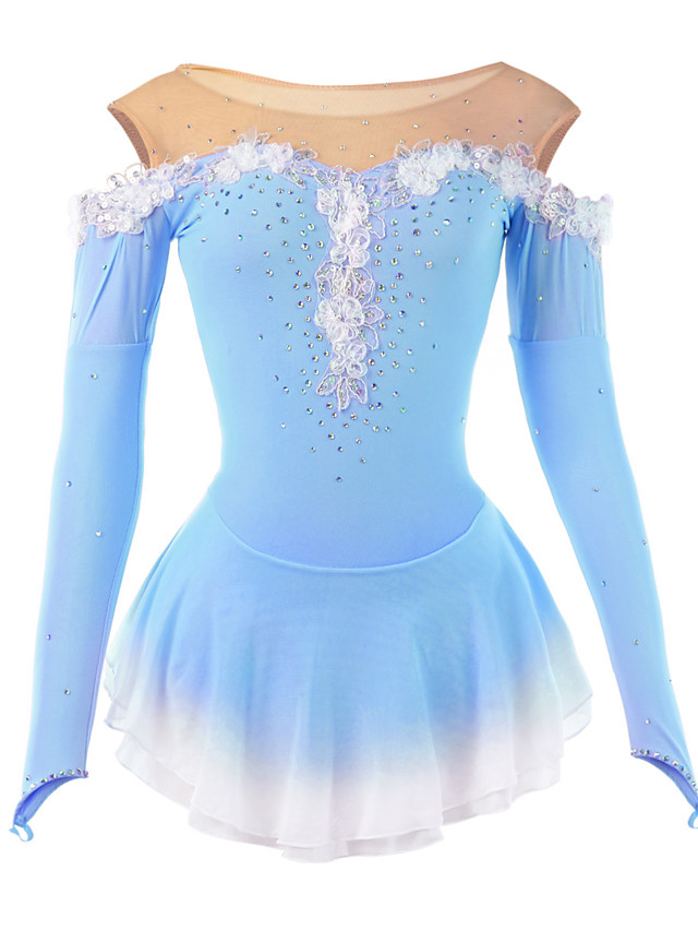 Eiskunstlaufkleid Mädchen Mit Strasssteinen - Elastisches Tanzkleid Langarm