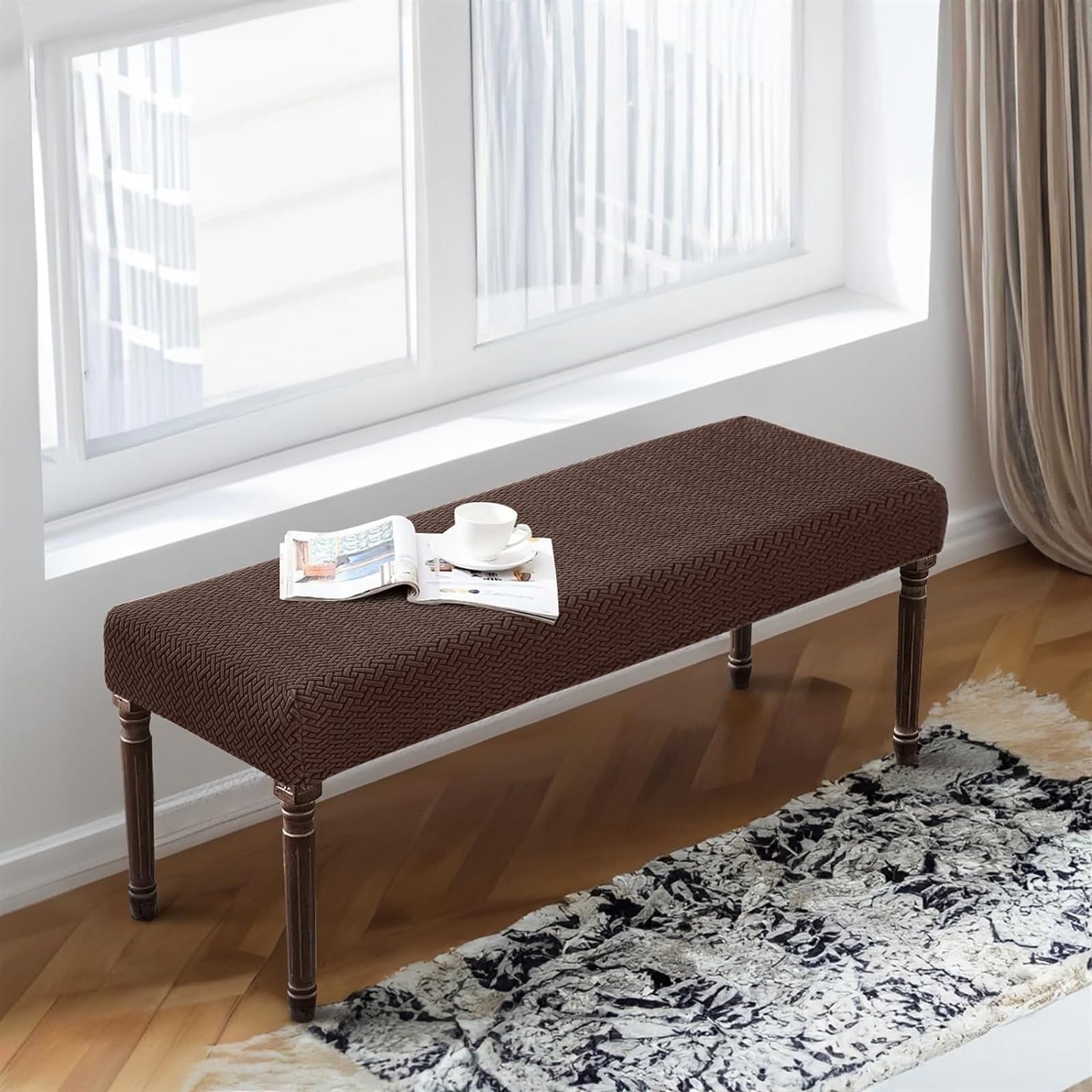 Deine Bank sieht müde aus? Dieser elastische Esszimmerbankbezug in 120x150cm verleiht deinem Möbelstück neuen Schwung! Aus hochwertigem Polyester-Spandex Strick-Jacquard gefertigt, ist der Bezug weich, flexibel und angenehm auf der Haut.