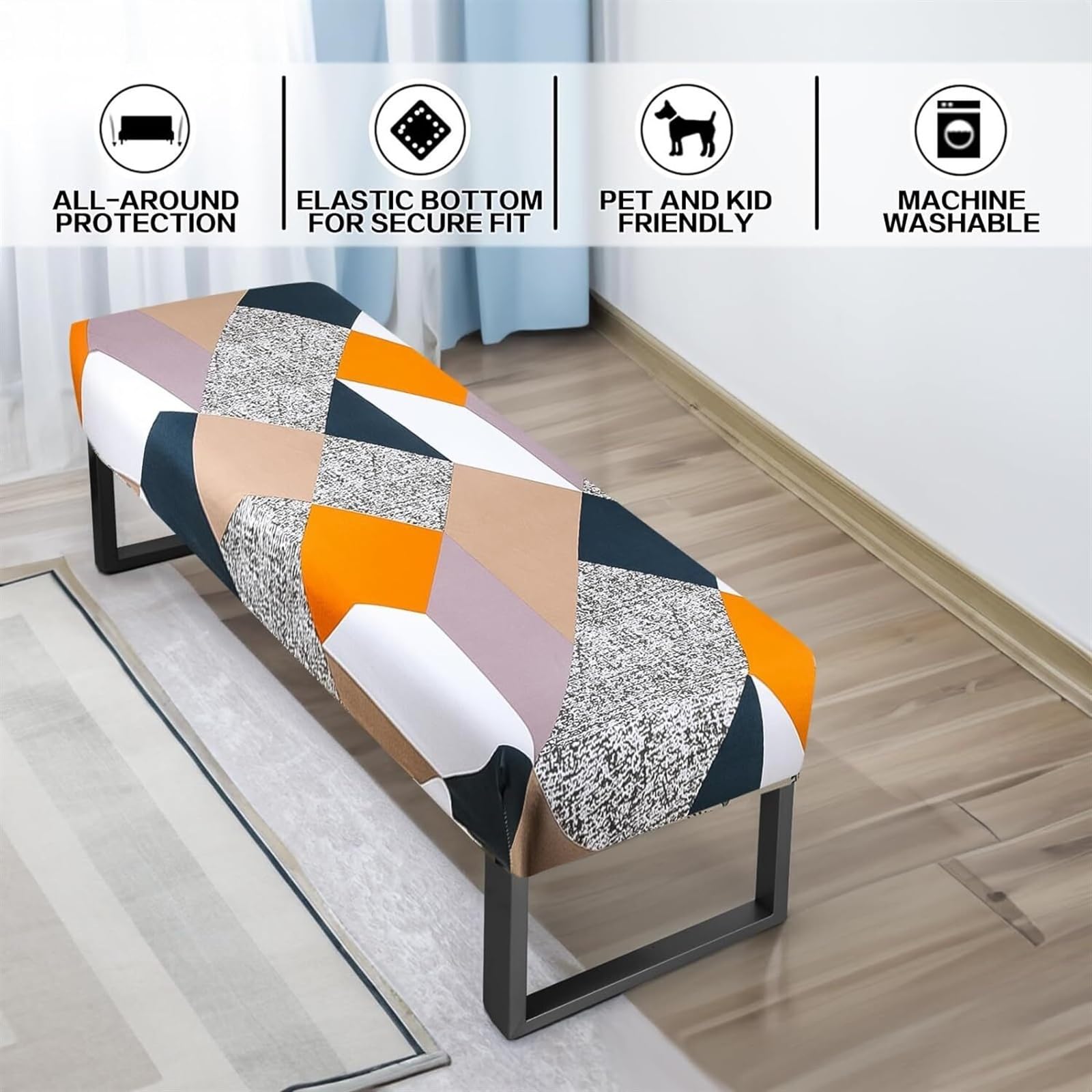 Der hochelastische Stoff passt sich perfekt deiner Bank an und bleibt sicher an Ort und Stelle - kein Verrutschen mehr! Gleichzeitig schützt er dein Möbelstück vor täglichen Flecken, Abnutzung und Kratzern.