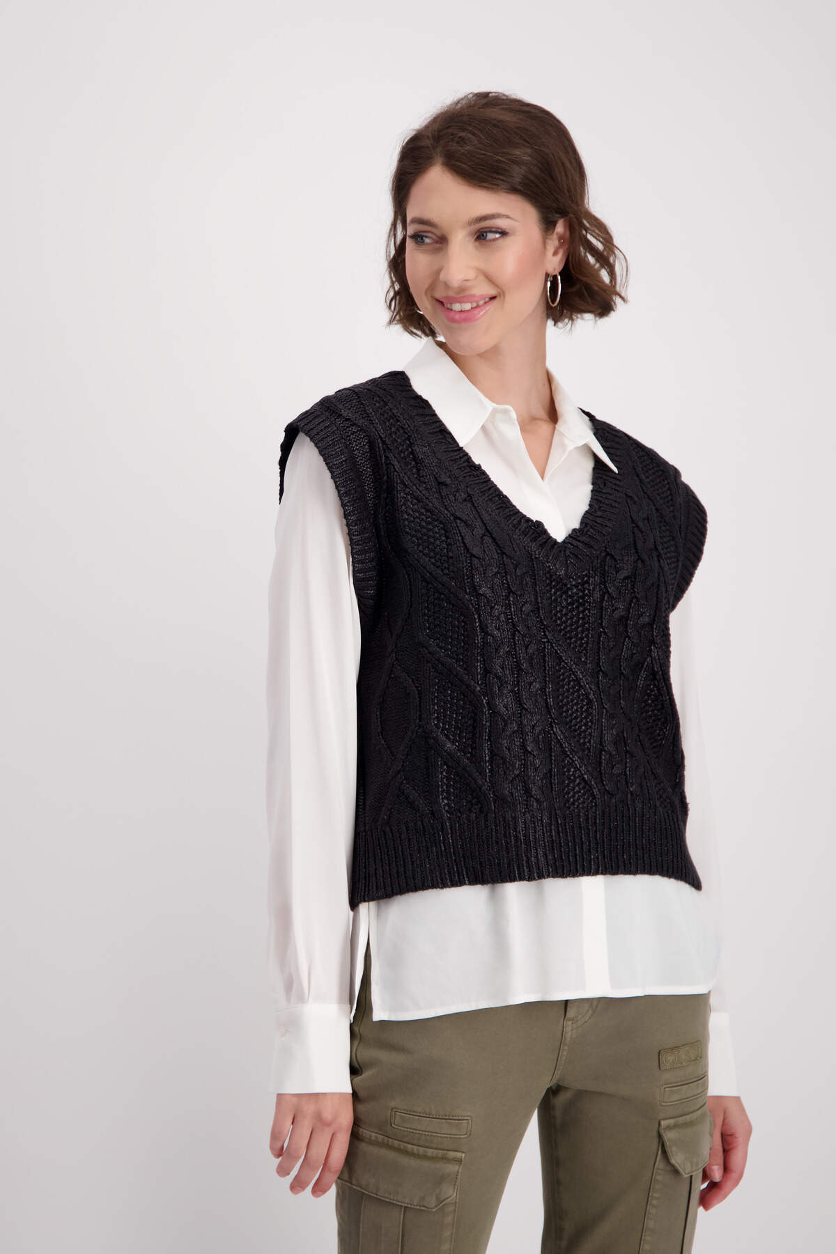 Stylish und bequem! Dieser MONARI Pullunder ist dein neuer Liebling für jeden Tag. \\n\\nMaterial: 100% Polyester - super weich und pflegeleicht. \\n\\nFeatures: \\n• Eleganter Stehkragen \\n• Regular Fit - nicht zu eng, nicht zu locker \\n• Ärmellos - perfekt zum Layern \\n• Sanfte Haptik - angenehm auf der Haut \\n\\nStyling-Ideen: \\n• Über Blusen oder Langarm-Shirts \\n• Im Büro mit Hemd \\n• Freizeit mit T-Shirt \\n• Abends mit Seidenbluse \\n\\nVorteile: \\n• Vielseitig kombinierbar \\n• Leicht und bequem \\n• Elegantes Design \\n• Einfache Pflege \\n\\nPerfekt für: \\n• Office-Looks \\n• Freizeit \\n• Spaziergänge \\n• Treffen mit Freunden \\n\\nFarbe: Wie abgebildet - zeitlos und vielseitig. \\n\\nLieferumfang: \\n• 1x MONARI Pullunder \\n\\nVerwöhne dich mit diesem Must-Have - bestelle noch heute!