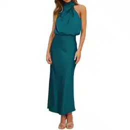 Ballkleid Damen Lang Satin - Elegantes Abendkleid Mit Neckholder & Schlitz