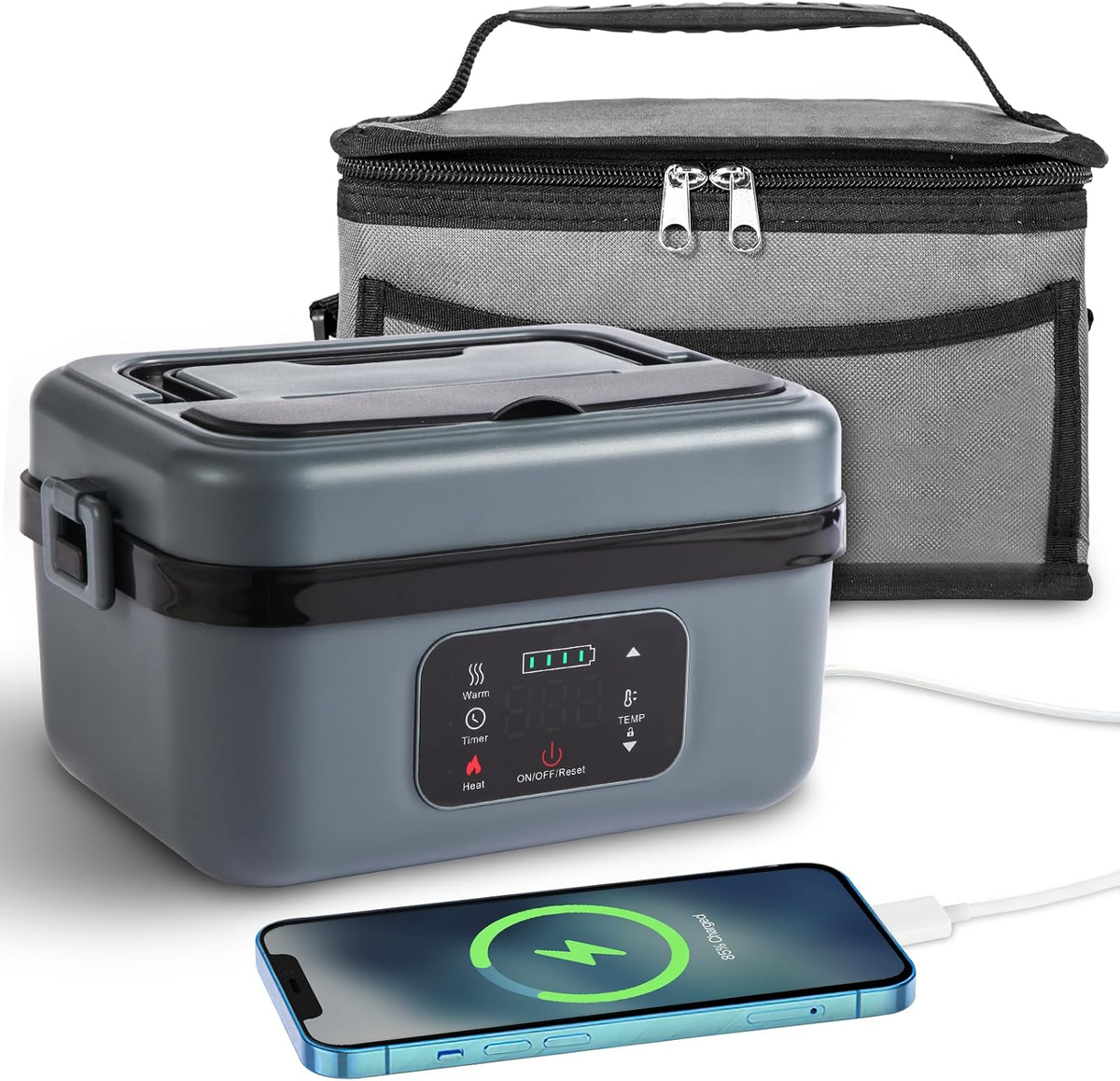 Warme Mahlzeiten immer und überall! Diese praktische Heizbox mit riesigen 16000mAh Akku macht's möglich. Einfach dein Essen rein, Timer einstellen und in 20-30 Minuten ist es heiß und genießbar. Der Edelstahl-Innenbehälter ist spülmaschinenfest und auslaufsicher - kein Kleckern in der Tasche! Mit 1 Liter Fassungsvermögen passt eine komplette Mahlzeit rein. Die isolierte Tragetasche hält alles schön warm bis zur Essenspause. Und das Beste: Die Box kann sogar als Powerbank für dein Handy dienen! Perfekt für Handwerker, Büro, Uni oder Outdoor-Abenteuer. Einfach über USB-C aufladen (ca. 4 Stunden) und du hast bis zu 70 Minuten Heizzeit. Mit praktischer Trennplatte für verschiedene Speisen. Nie wieder kalte Mittagessen - hol dir deine mobile Küche!