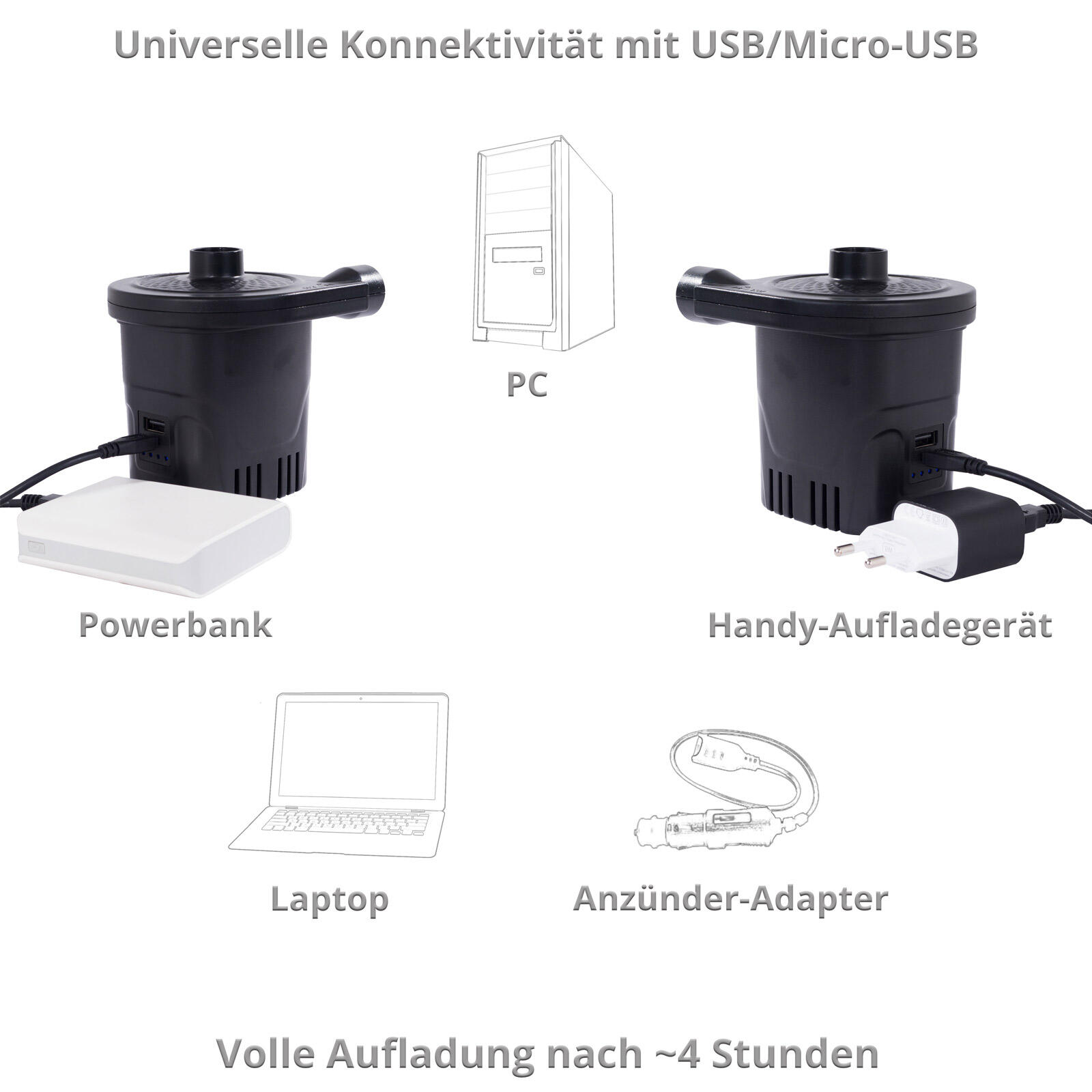 Tragbare Luftpumpe Mit 4000mAh Akku - Elektrische Pumpe Für Camping, Pool & Luftbetten