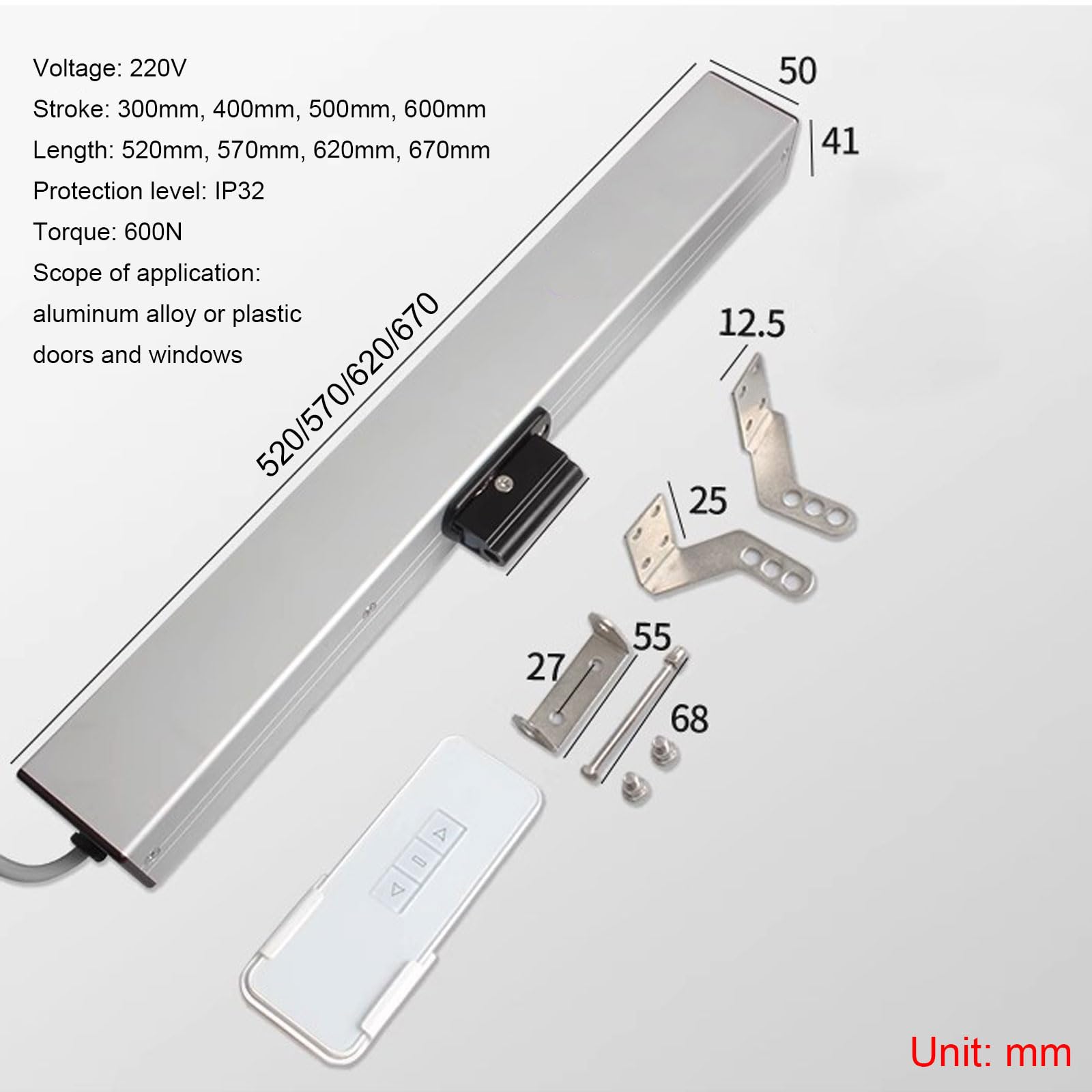 Nie wieder mühsam Fenster öffnen! Dieser elektrische Fensteröffner mit Kettenantrieb macht's möglich. Mit stolzen 600 N Drehmoment packt er auch schwerere Dachfenster und Lüftungen problemlos. Die doppelschichtige Kette ist super stabil und reduziert Bruchgefahr - dazu noch angenehm leise im Betrieb. Per Fernbedienung oder Wandschalter bedienbar, Reichweite bis 6 Meter! Der clevere Regensensor schließt automatisch bei Regen - nie wieder nasse Füße. Verfügbar in verschiedenen Hublängen von 300-700 mm, perfekt für Dachfenster, Gewächshäuser oder Schiebedächer. Mit 24V Gleichstrom und IP32 Schutzklasse absolut sicher. Besonders praktisch für ältere Menschen oder Menschen mit Bewegungseinschränkungen. Einfach installieren und Komfort genießen!