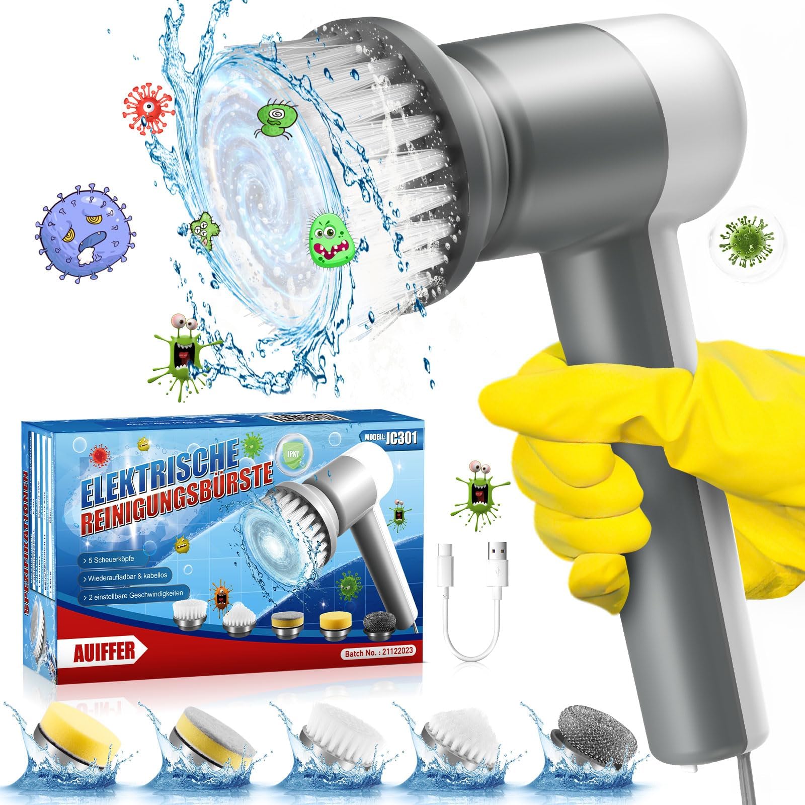 Putzen war noch nie so einfach! Dieser elektrische Spin Scrubber nimmt dir die lästige Schrubarbeit ab. Mit 8 austauschbaren Bürstenköpfen bist du für jeden Bereich gewappnet: eine große Flachbürste für Böden, eine kleine für Waschbecken, eine spitze für Fugen, eine Faserbürste für hartnäckigen Schmutz und sogar ein Schwamm für Fenster. Fünf einstellbare Geschwindigkeiten (von 320 bis 470 U/min) ermöglichen dir die perfekte Reinigung – ob sanft für empfindliche Oberflächen oder kräftig für verkrustete Stellen. Der verstellbare Griff (bis 125 cm) sorgt dafür, dass du dich nicht bücken oder knien musst, was besonders für ältere Menschen oder Personen mit Rückenproblemen ideal ist. Der Akku (2000 mAh) bietet genug Power für mehrere Reinigungsdurchgänge und lädt in nur 3 Stunden per USB-C. Wassergeschützt und einfach zu lagern, ist dieser Scrubber dein neuer bester Freund im Haushalt. Mach dir das Leben leichter!