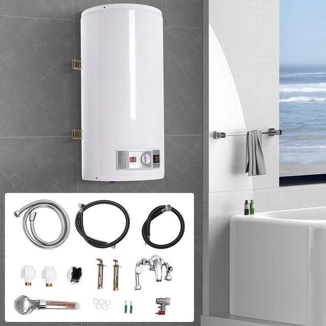 Endlich immer warmes Wasser! Dieser elektrische Warmwasserspeicher mit 35 Litern Fassungsvermögen und 2000W Leistung sorgt für zuverlässige Warmwasserversorgung in deinem Badezimmer. Perfekt für Friseursalons, kleine Wohnungen oder Gäste-WCs. Der Boiler heizt das Wasser in etwa einer Stunde auf und hält die Temperatur dank guter Isolierung lange. Mit praktischem Drehregler kannst du die Temperatur zwischen 25°C und 75°C genau einstellen. Im Lieferumfang ist alles dabei: Boiler, Handbrause, Schläuche, Brausehalterung und sogar ein Wasserhahn! Die Wandmontage ist einfach und platzsparend. Mit IPX4 Schutz gegen Spritzwasser und verschiedenen Sicherheitsfeatures ist das Gerät absolut zuverlässig. Einfach anschließen, einschalten und sich über jederzeit warmes Wasser freuen! Perfekt für alle, die keine zentrale Warmwasserversorgung haben oder zusätzlichen Komfort wollen.