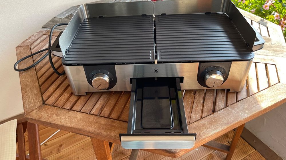 Grillvergnügen pur - auch ohne Garten! Dieser FOHERE Elektrogrill mit 2400W Power heizt blitzschnell auf und sorgt für perfekte Grillresultate. Das geniale Duo-System: Zwei komplett unabhängige Grillplatten - eine glatt für Teppanyaki, eine gerillt für klassische Grillstreifen. Jede Platte hat ihr eigenes 5-stufiges Thermostat - so grillst du Steak, Fisch und Gemüse gleichzeitig auf ihrer Ideal-Temperatur. Die hochwertige Anti-Haft-Beschichtung macht das Garen besonders fettarm und gesund. Praktischer Windschutz reduziert Spritzer, die Auffangschale sammelt überschüssiges Fett. Alle Teile spülmaschinengeeignet - super easy zu reinigen. Perfekt für Balkon, Terrasse oder Indoor-Grillen. Ob Familienfeier, Party oder gemütlicher Abend - mit diesem Grill wird jedes Essen zum Event. Einfach anschließen und losgrillen!