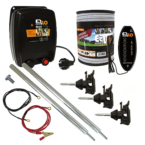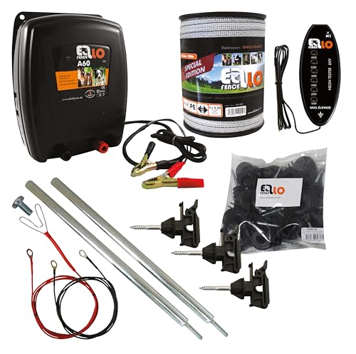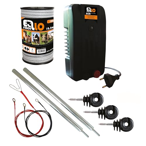 Perfekt für Tierhalter und Hobbybauern! Dieses Weidezaun Komplett-Set von Ellofence hat alles, was du brauchst: 200m Band, 230V Netzgerät, Erdungsset, 10 Pfähle, LED-Tester und Ringisolatoren. Einfach auspacken, aufbauen und anschließen - schon ist dein Elektrozaun betriebsbereit! Das Band ist 12,5mm breit und gut sichtbar für deine Tiere. Die Stromimpulse sind ungefährlich, aber deutlich spürbar - so setzt du klare Grenzen! Das Weidezaungerät arbeitet flüsterleise - perfekt für ruhige Umgebungen. Ideal für Pferde, aber auch für andere empfindliche Tiere geeignet. Alles perfekt aufeinander abgestimmt - kein mühsames Zusammensuchen einzelner Teile! Wetterfeste Materialien für langen Outdoor-Einsatz. Ob für Garten, Weide oder Paddock - mit diesem Set bist du bestens ausgerüstet! Hol dir das Rundum-sorglos-Paket und sorge für sichere Grenzen!