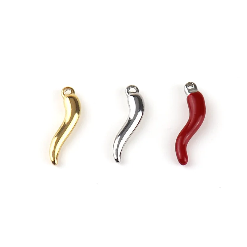 Diese süßen Chili-Anhänger bringen richtig Pepp in deine Schmuckkreationen! Im Set bekommst du ganze 40 Stück dieser niedlichen Paprika-Anhänger - genug für mehrere Projekte oder zum Teilen mit deinen kreativen Freundinnen. Jeder Anhänger ist ein kleines Kunstwerk: Aus hochwertiger Legierung gefertigt und mit leuchtend roter Emaille veredelt, sehen die Mini-Paprikas täuschend echt aus. Die glatte Oberfläche fühlt sich angenehm an und die großen Ösen machen das Auffädeln super einfach. Mit Maßen von 19 x 6 mm sind die Anhänger klein genug für filigranen Schmuck, aber groß genug um gut zur Geltung zu kommen. Die Emaille-Farbe bleibt lange kräftig und verblasst nicht so schnell wie bei billigen Alternativen. Ob für Halsketten, Armbänder, Ohrringe oder Schlüsselanhänger - deiner Kreativität sind keine Grenzen gesetzt. In vielen Kulturen symbolisieren Chilis übrigens Glück und Wohlstand - das macht sie zu einem besonders herzlichen Geschenk für liebe Menschen. Perfekt für DIY-Abende, Bastelprojekte mit Kindern oder um persönlichen Schmuck zu gestalten. Einfach die gewünschte Kette oder das Armband durchziehen - und schon hast du ein Unikat geschaffen!