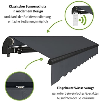 Sonne genießen, Schatten haben - mit dieser empasa Gelenkarmmarkise 'Start' wird deine Terrasse zur Wohlfühloase! Komplett vormontiert geliefert, sparst du dir lästiges Zusammenbauen. Einfach an die Hauswand schrauben und schon kann's losgehen. Die Handkurbel mit 154 cm Länge macht das Aus- und Einfahren zum Kinderspiel.\n\nMit verstellbarem Neigungswinkel von 5-40° stellst du den Schatten genau nach deinen Wünschen ein. Das wetterfeste Polyestertuch in Anthrazit oder Elfenbein (280g/m² mit PU-Beschichtung) hält UV-Strahlung und leichtem Regen stand. Der weiße Aluminium-Rahmen sieht nicht nur stylisch aus, sondern ist auch super stabil.\n\nOb 2,5x2 m oder 3x2,5 m - für jede Terrassengröße ist die passende Markise dabei. Tuchwelle Ø60 mm, Querprofil 35x35 mm - alles durchdacht und qualitativ hochwertig. Wichtig: Bei Mietwohnungen vorher den Vermieter fragen! Und bei Dauerregen einfahren, dann hält die Markise umso länger. Perfekter Sonnenschutz für den ganzen Sommer!