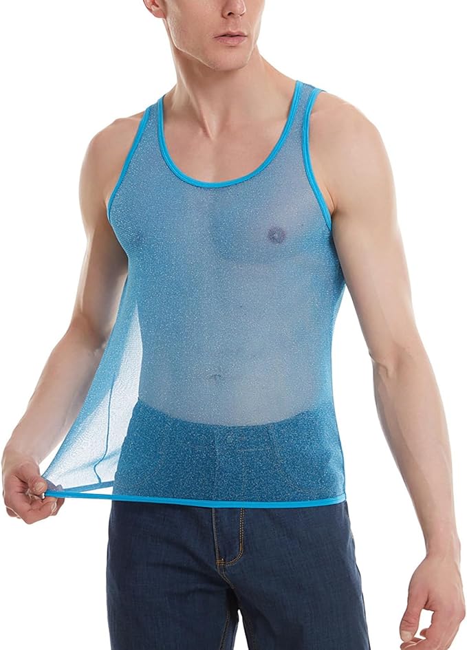 Herren Netz Hemd Muskeltop Transparent - Enganliegendes Fischnetz Top Für Club & Party