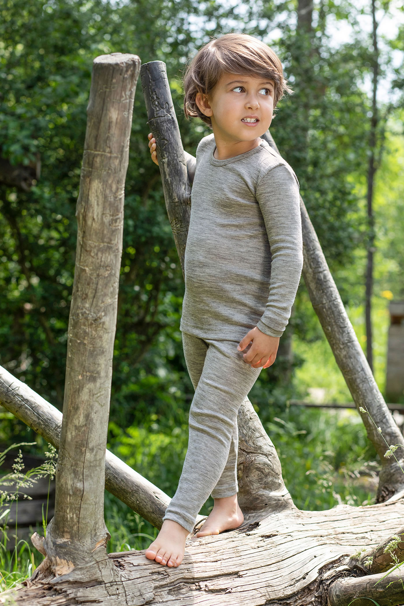 Engel Natur Kinder Unterhemd Langarm - 70% Merinowolle 30% Seide GOTS Zertifiziert