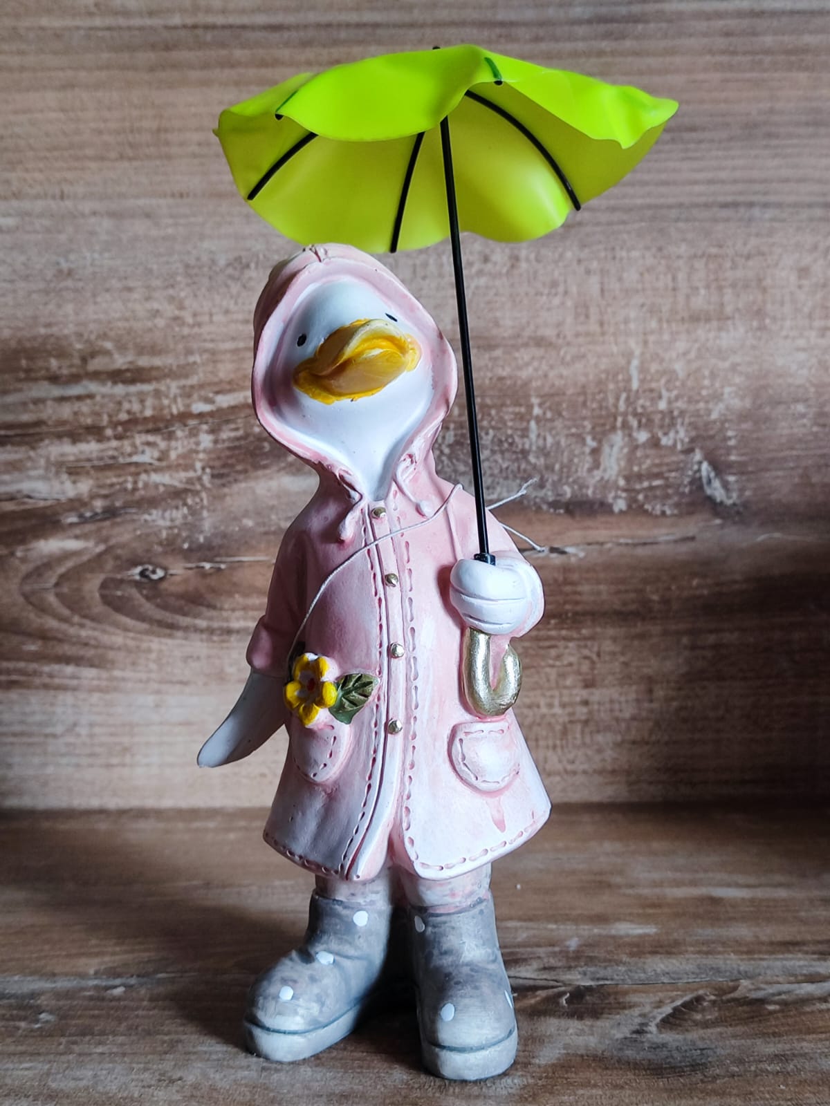 Diese niedliche Ente mit Schirm bringt Charme in deinen Garten! Mit 16x12x7 cm ist sie perfekt für Gehwege, Balkone, Terrassen oder sogar den Schreibtisch. Aus robustem Harz gefertigt, hält sie jedem Wetter stand - ob Regen, Sonne oder Frost. Das detailverliebte Design mit dem Regenschirm-Motiv sorgt für verspielte Atmosphäre und lächelt jeden Besucher an. Super als Geschenk für Gartenfreunde oder zur Verschönerung des eigenen Zuhauses. Leicht zu platzieren - ob zwischen Blumen, am Teichrand oder als Deko im Wohnzimmer. Die 130 Gramm leichte Figur ist handlich und dennoch stabil. Verleihe deinem Garten oder Balkon eine persönliche Note mit diesem charmanten Enten-Pärchen. Einfach hinstellen und sich an dem fröhlichen Anblick erfreuen!