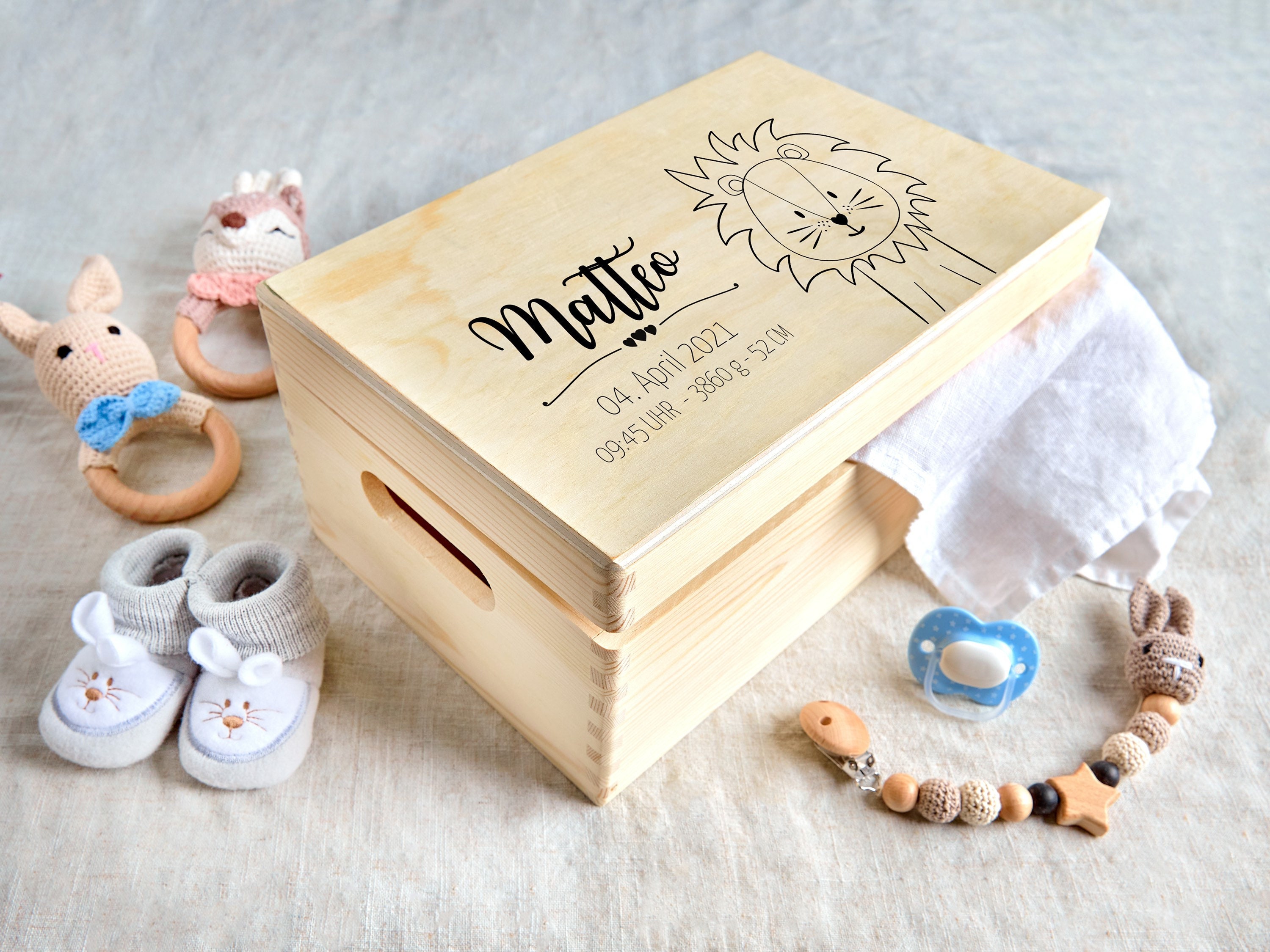 Erinnerungskiste Baby Mit Gravur - 32x19x9 Cm Holzkiste Personalisiert