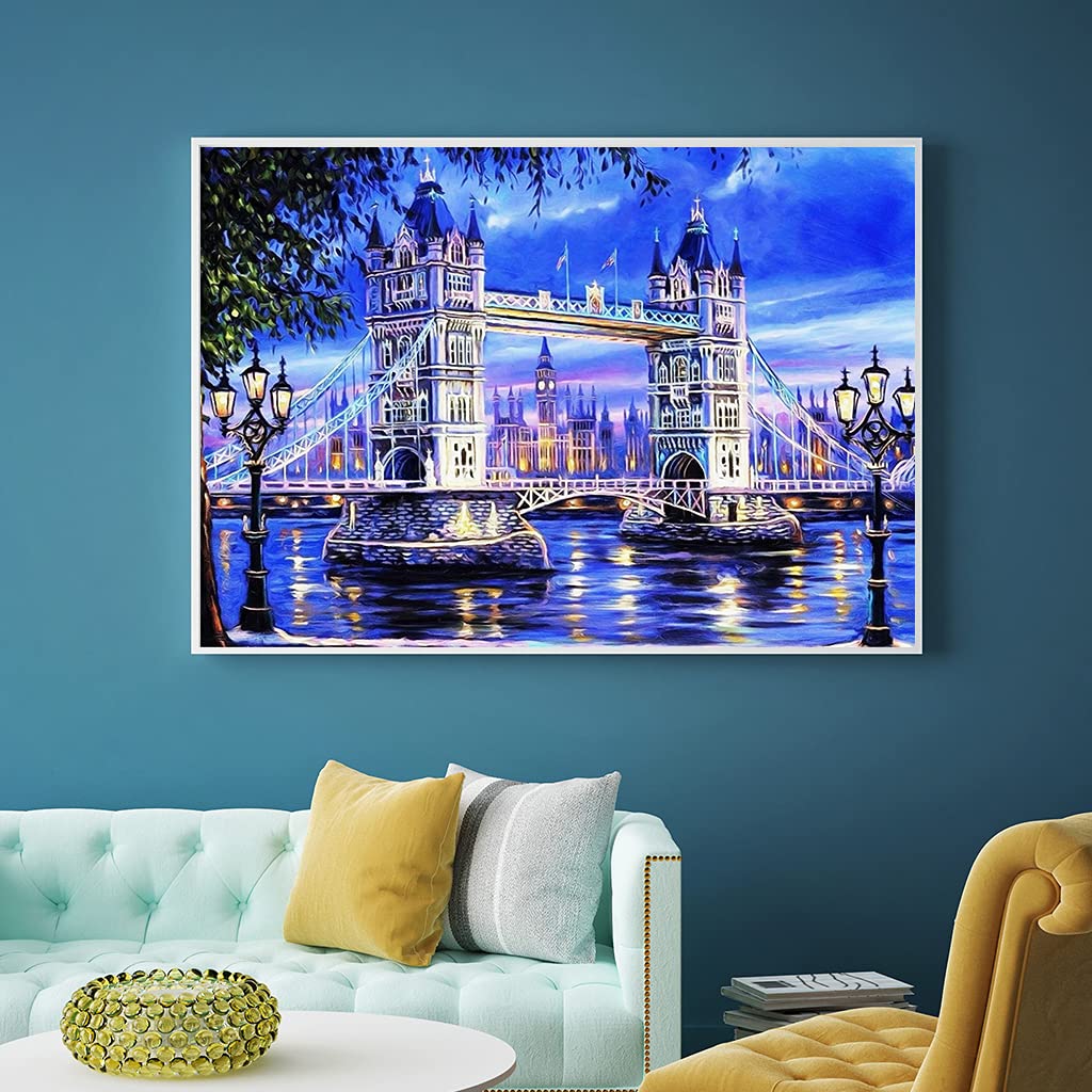 Wow, dieses Diamond Painting Set ist perfekt zum Abschalten! Mit den eckigen Steinen entsteht ein ultra-detailliertes Bild von einer Brücke mit Feuerwerk - einfach magisch. Das 50x40cm große Leinwandbild ist ideal für Landschaftsmotive und bringt richtig was her. \n\nWarum Diamond Painting? Ganz einfach: Es entspannt total, man kann super abschalten nach einem stressigen Tag und es fördert nebenbei noch Konzentration und Feinmotorik. Keine Sorge, als Anfänger kommt man damit auch klar - die Symbole auf der Leinwand sind gut erkennbar, keine Lupe nötig!\n\nIm Set ist alles dabei, was du brauchst: HD-Leinwand, bunte Diamantsteine, Wachs, Mehrfach-Werkzeug, Pinzette, Stift und Schälchen. Extra-Tipp: Wenn die Leinwand mal lockig wird, einfach ein paar Bücher drauflegen. Und denk dran - die Steine sind nicht für Kinder unter 3 Jahren geeignet!\n\nFür wen ist das was? Eigentlich für jeden, der gerne bastelt und mal was Neues ausprobieren will. Ob als Geschenk oder für dich selbst - das Ergebnis wird garantiert beeindruckend!
