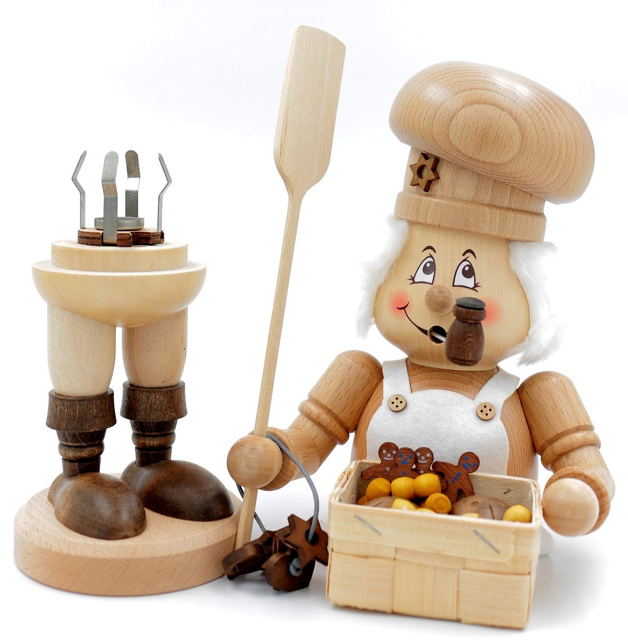 Oh, dieser Räuchermann ist einfach bezaubernd! Vom traditionsreichen Hersteller Kuhnert aus dem Erzgebirge kommt diese wunderschöne Holzkunst-Figur. Die 22 cm große Kräuterfrau ist ein echter Hingucker in jeder Wohnung. Handgefertigt nach alter Handwerkskunst, wie man sie aus dem Erzgebirge kennt. Einfach ein Räucherkegel in die Figur stellen, anzünden und schon steigt der duftende Rauch gemütlich aus der Öffnung. Perfekt für die Adventszeit, aber auch als Deko das ganze Jahr über ein Blickfang. Die liebevollen Details und die hochwertige Verarbeitung machen diese Figur zu etwas Besonderem. Ob auf dem Kaminsims, dem Sideboard oder als Teil einer größeren Weihnachtspyramide - dieser Räuchermann bringt gemütliches Flair in dein Zuhause. Ein Stück deutsche Handwerkstradition, das Generationen überdauert. Ideal als Geschenk für Weihnachtsfans oder Sammler von erzgebirgischer Volkskunst. Die Qualität spürt man sofort - jedes Detail ist sorgfältig ausgearbeitet. So macht Weihnachten noch mehr Spaß! Übrigens: Räuchermänner sind nicht nur was für Omas - immer mehr junge Leute entdecken diese Tradition für sich!