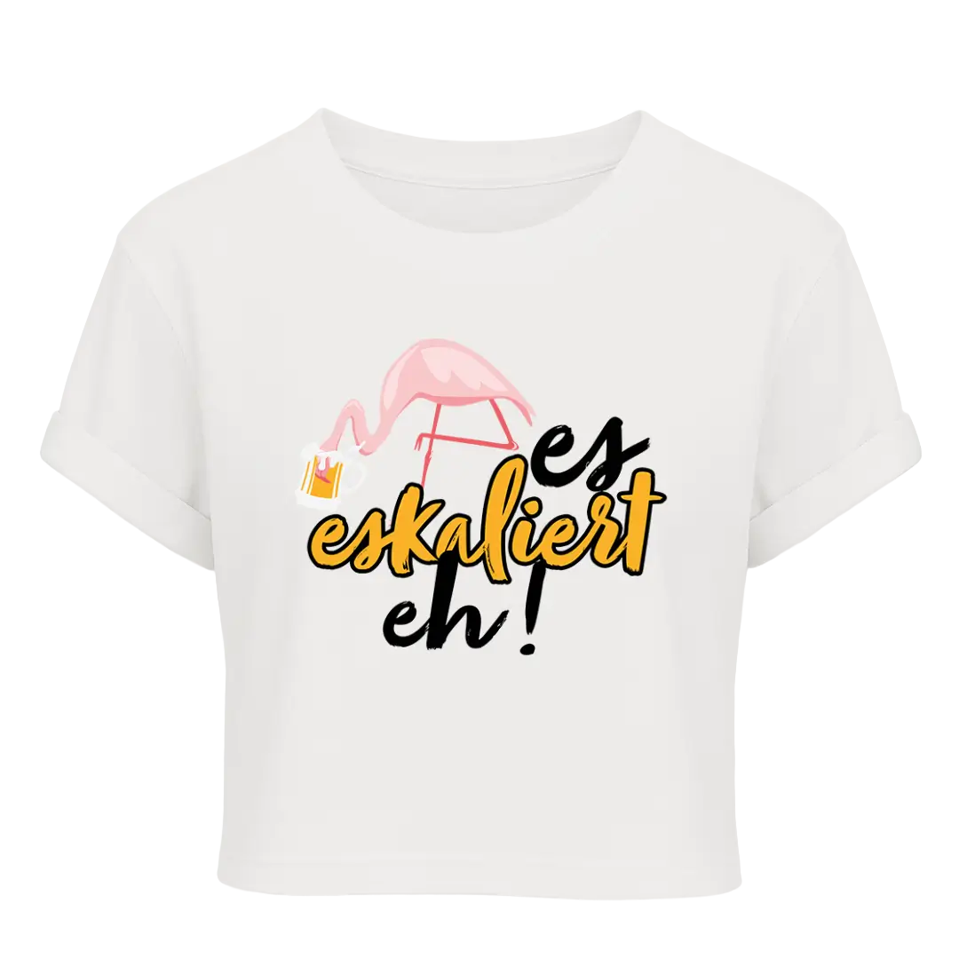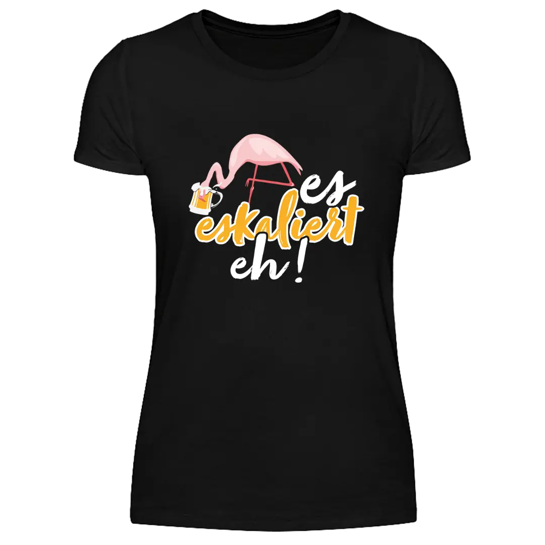 Perfekt für den nächsten Mädelsabend! Dieses witzige Shirt sorgt garantiert für Stimmung. \\n\\nLUSTIGER SPRUCH: 'Es eskaliert eh!' - der perfekte Vibe für Party und Feiern! \\n\\nSUPER FLAMINGO-DESIGN: Trendiges Motiv - einfach niedlich und witzig zugleich! \\n\\nALS TANK TOP: Leicht und luftig - ideal für warme Sommerabende oder Partys! \\n\\nDOppELT GENÄHT: Hochwertige Verarbeitung - hält auch wilden Tanzpartys stand! \\n\\nIDEAL FÜR: Junggesellinnenabschied, Malle-Party, Karneval - einfach überall wo Spaß ist! \\n\\nTOLLES GESCHENK: Für die beste Freundin oder als Gruppen-Shirt für die Mädelsgruppe! \\n\\nLEICHTE MATERIALIEN: Angenehm zu tragen - auch bei Hitze kein Problem! \\n\\nVIELE ANLÄSSE: Geburtstage, Polterabend, Ladies Night - passt immer! \\n\\nGRÖSSEN: In verschiedenen Größen erhältlich - für jede Frau das Passende!