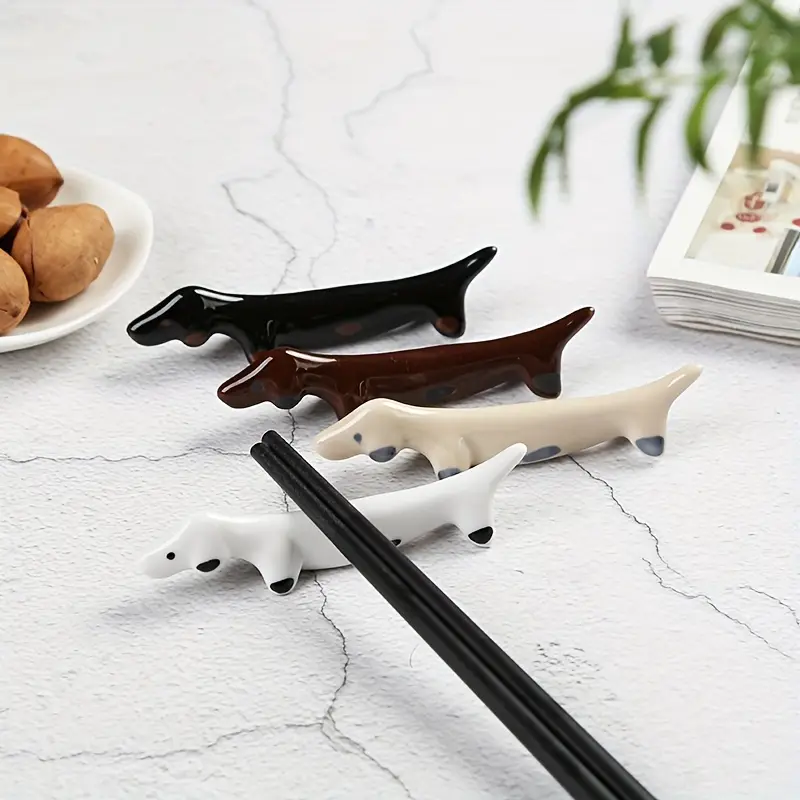Huasean Essstäbchenhalter Dackel - 4 Stück Edelstahl Hunde Design