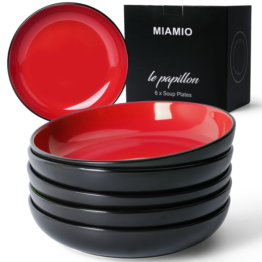 Vilde Tiefe Essteller Schwarz 6er Set - 21,5cm Opalglas