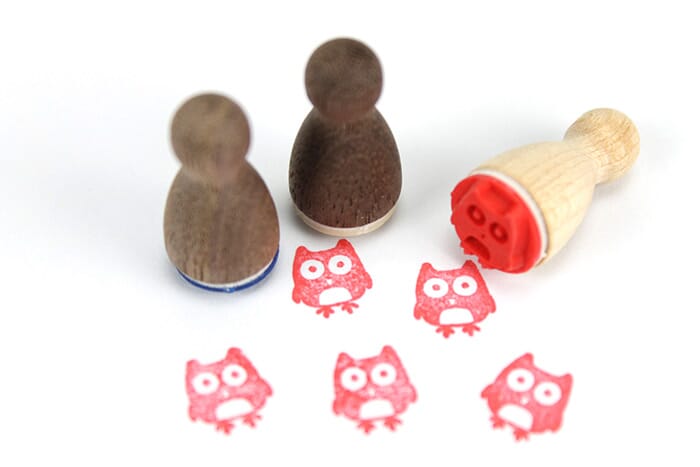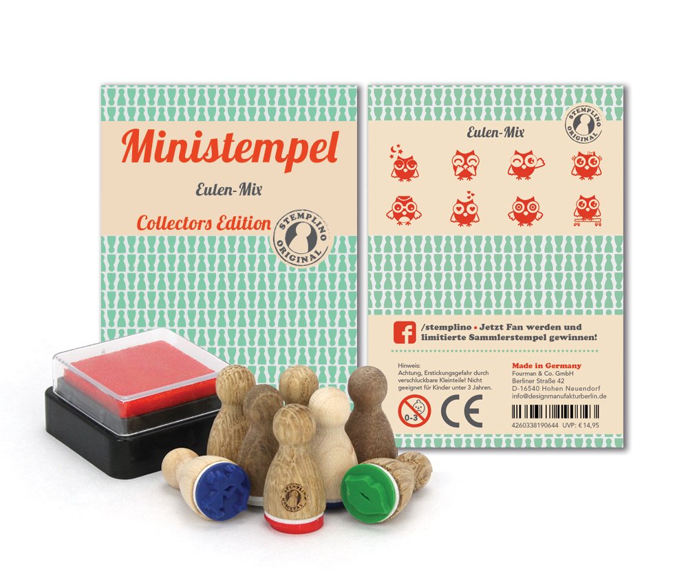 Stemplino Stempelset Eulen - 8 Holz Ministempel Mit Stempelkissen
