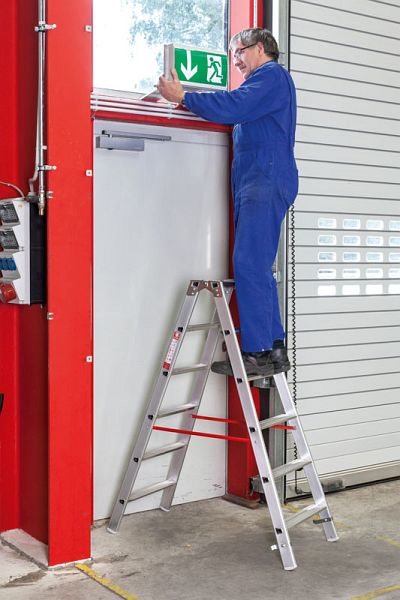 Für alle Heimwerker und Profis - dieser Alu-Handwerkerbock ist dein vielseitiger Helfer bei Renovierung, Malerarbeiten oder im Garten! Mit 2x2 Sprossen bietet er sicheren Stand und die senkrechte Leiterhöhe von 0,85 m gibt dir die perfekte Arbeitshöhe. Die untere Breite von 0,55 m sorgt für Stabilität, egal ob du streichst, reparierst oder etwas montierst. Aus robustem Aluminium gefertigt, ist der Bock dabei erstaunlich leicht - easy zu transportieren und zu verstauen. Perfekt für die Arbeit in der Werkstatt, auf der Baustelle oder einfach zu Hause. Du kannst ihn nicht nur als Tritthilfe nutzen, sondern auch als Ablage für Werkzeuge und Materialien. Vielseitig einsetzbar und absolut zuverlässig - genau das, was du brauchst, wenn du praktisch veranlagt bist und Wert auf Qualität legst. Der Euroline Bock Nr. 315 ist ein echter Allrounder, der in keiner gut sortierten Werkstatt fehlen sollte. Sicher, stabil und langlebig - dein Partner für alle Arbeiten in schwindelnder Höhe!