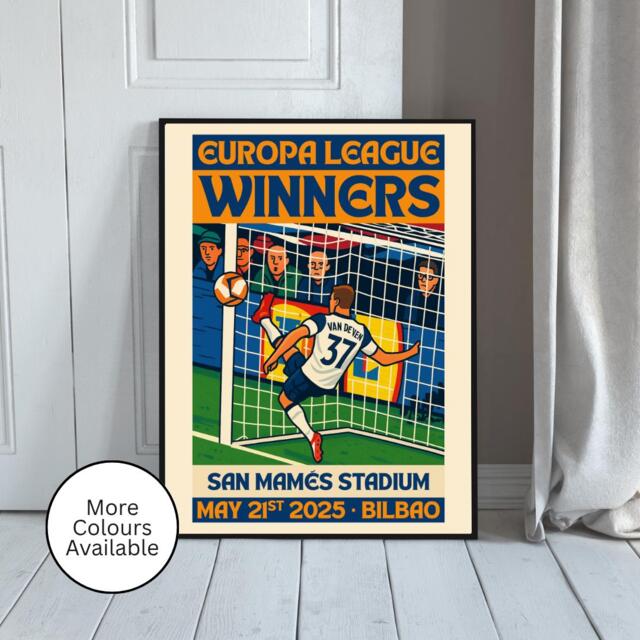 TOTTENHAM HOTSPUR 2025 Europa League Sieger Poster - San Mamés Stadion A3 Kunstdruck