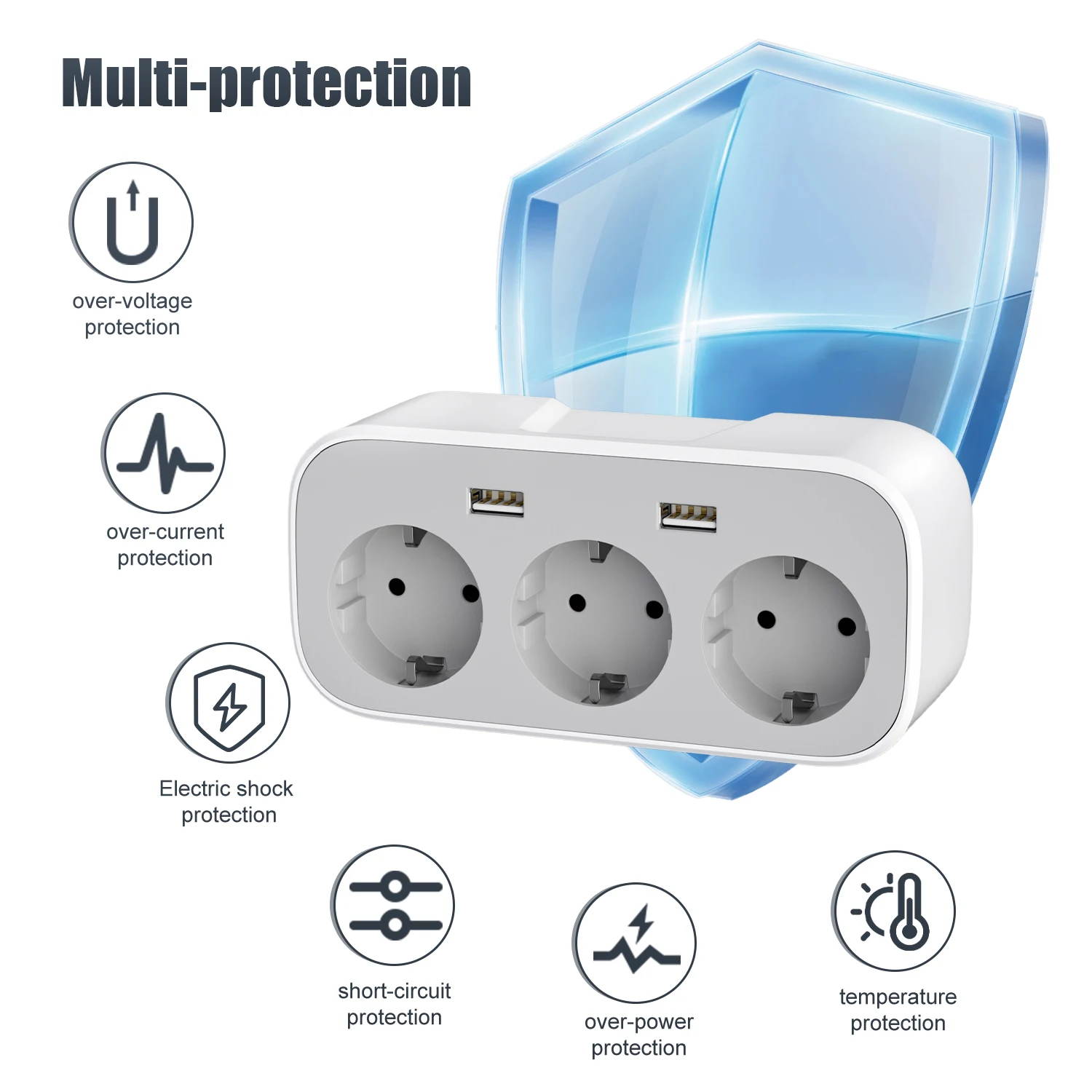 Eurostecker Mehrfachsteckdose 3-fach | Wandstecker Mit Verlängerung | Für Haushalt & Büro