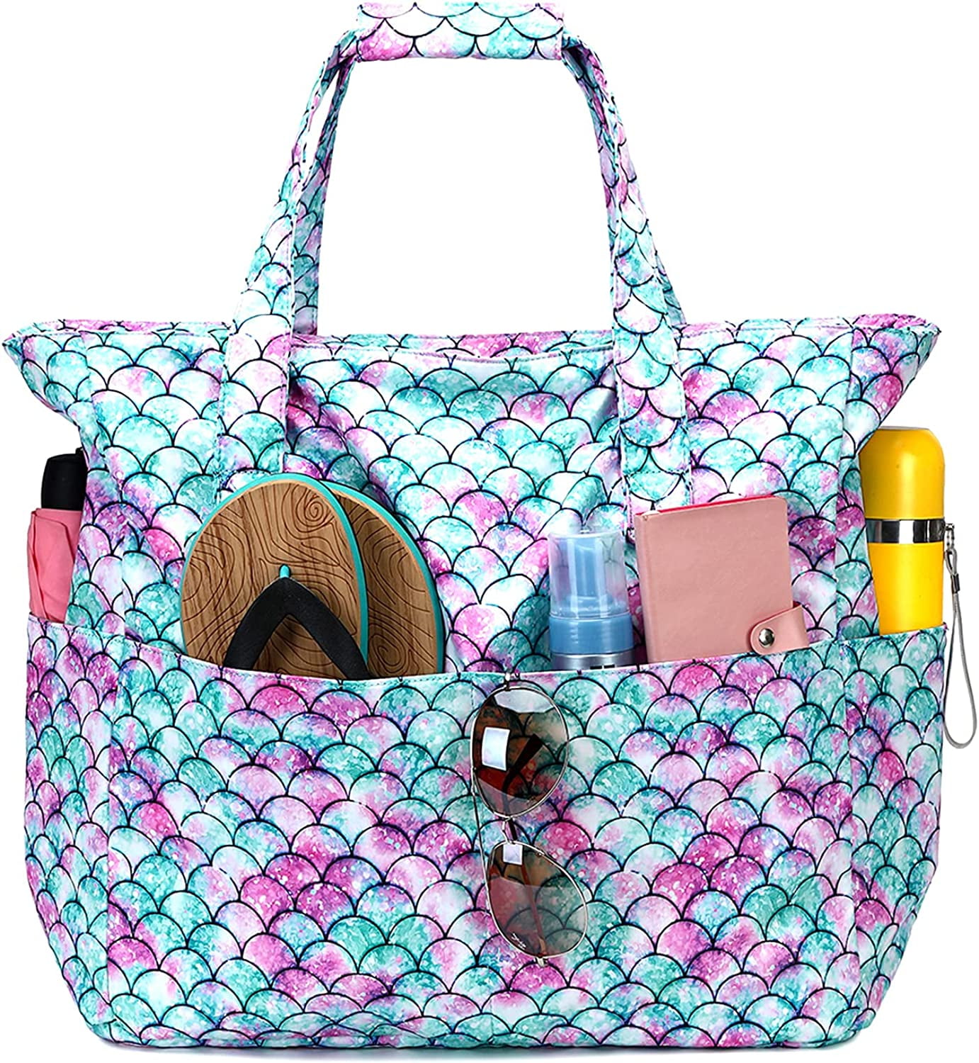 Die perfekte Begleiterin für Strand, Pool und Reisen! Diese extra große Beach-Tasche hat alles, was du brauchst. Mit 44,5x20x40cm bietet sie reichlich Platz für Handtücher, Sonnencreme und alles andere. Das geniale Nassfach separat für nasse Badekleidung oder schmutzige Wäsche - so bleibt alles andere trocken. Aus wasserdichtem, leichtem Material - super einfach zu reinigen und faltbar für platzsparende Aufbewahrung. Perfekt als Sporttasche fürs Fitnessstudio, als Weekender für Kurzreisen oder einfach als stylische Alltagstasche. Die robusten Trageriemen sind extra bequem - auch wenn die Tasche vollgepackt ist. Das auffällige Design zieht garantiert Blicke auf sich! Ideal für Familientage am Strand, Schwimmbad-Besuche oder Sportaktivitäten. Auch praktisch als Handgepäck für Flugreisen oder als Arbeitstasche für Lehrer und Krankenschwestern. Eine echte Allround-Tasche, die sich jeder Situation anpasst!