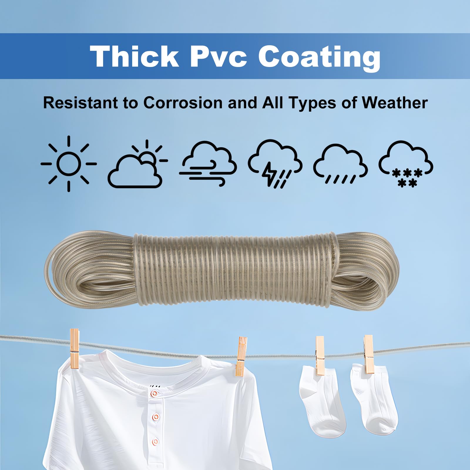 Wäscheleine 30m Extra Stark - 130kg Tragkraft Outdoor