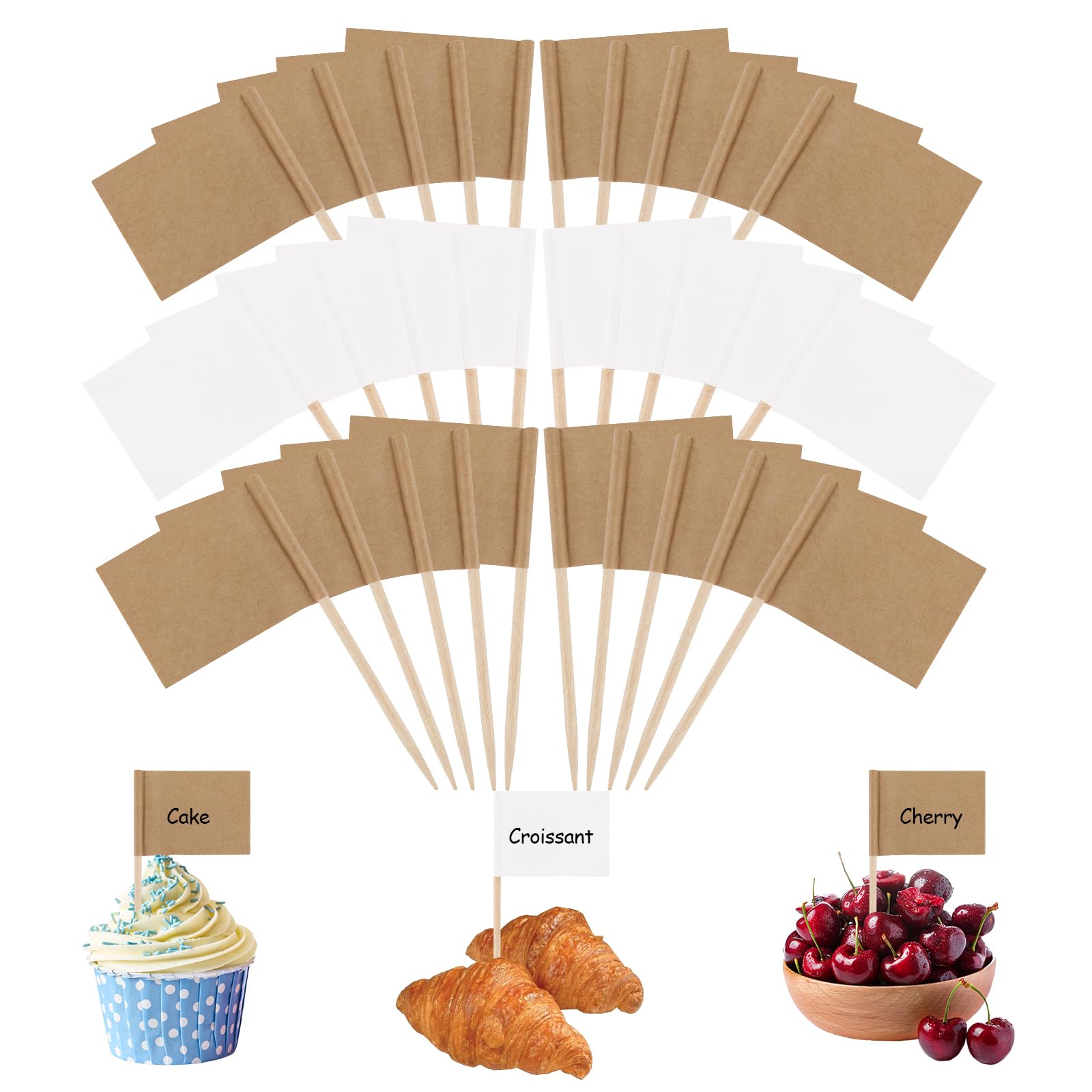 300 Stück Zahnstocher Fähnchen Weiß - DIY Beschriftung Für Party & Buffet