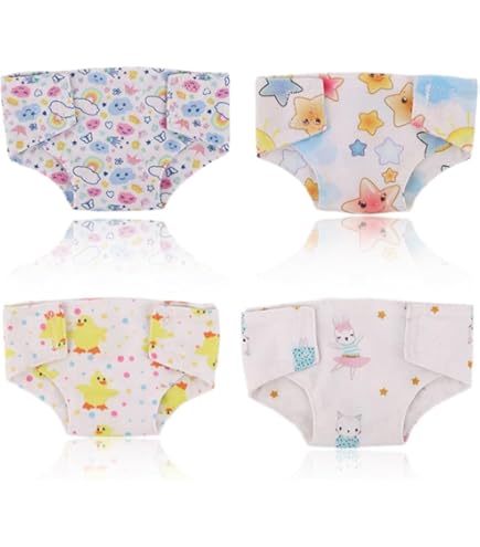 Süße Puppenpflege für kleine Muttis! Dieses entzückende Set enthält 3 verschiedene Puppenwindeln mit niedlichen Motiven (gelbes Hühnchen, bunte Wolken, Sterne) und 3 passende Paar Puppensocken. Perfekt für Puppen bis 18 Zoll (ca. 43 cm). Die Windeln haben praktische Selbstklebe-Streifen, die sich einfach an- und abziehen lassen - auch für kleine Kinderhände gut zu handhaben. Aus weichem, atmungsaktivem Stoff gefertigt, der sich leicht reinigen lässt und auch nach mehrmaligem Waschen nicht verblasst oder verformt. Die Socken in Rosa, Blau und Gelb passen perfekt zu den Windeln und komplettieren das Outfit. Ein tolles Geschenk für kleine Puppenmütter, das die Kreativität und Fürsorge fördert. Ob zum Spielen, für die Puppenwiege oder als Accessoire für die Lieblingspuppe - dieses Set bringt Freude ins Kinderzimmer. Einfach anziehen und die Puppenpflege kann beginnen! Perfekt für Rollenspiele und um das Thema Windeln wechseln spielerisch zu entdecken.