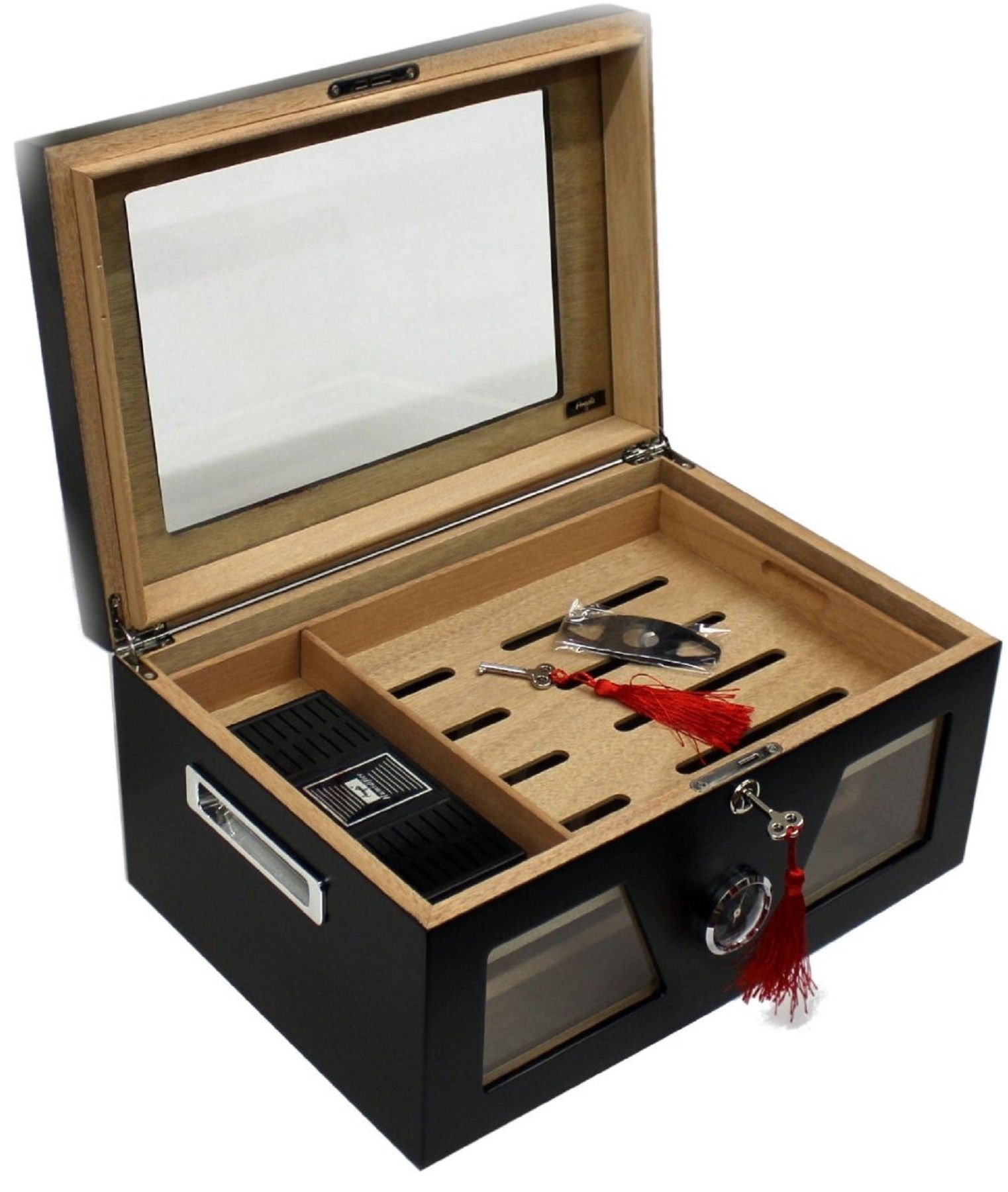 Angelo Humidor Für 25 Zigarren - Glasdeckel Mit Außenhygrometer