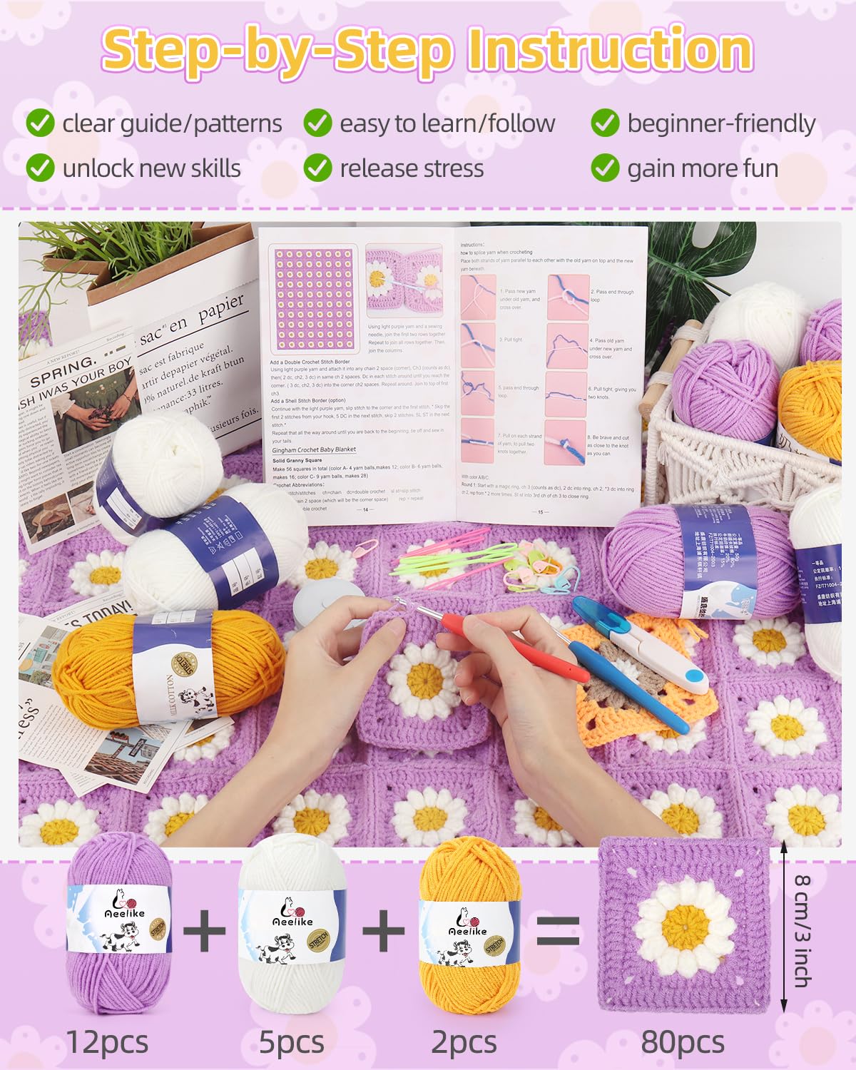 Aeelike Häkeldecken Set Für Anfänger - Vintage Regenbogen Wolle & Zubehör