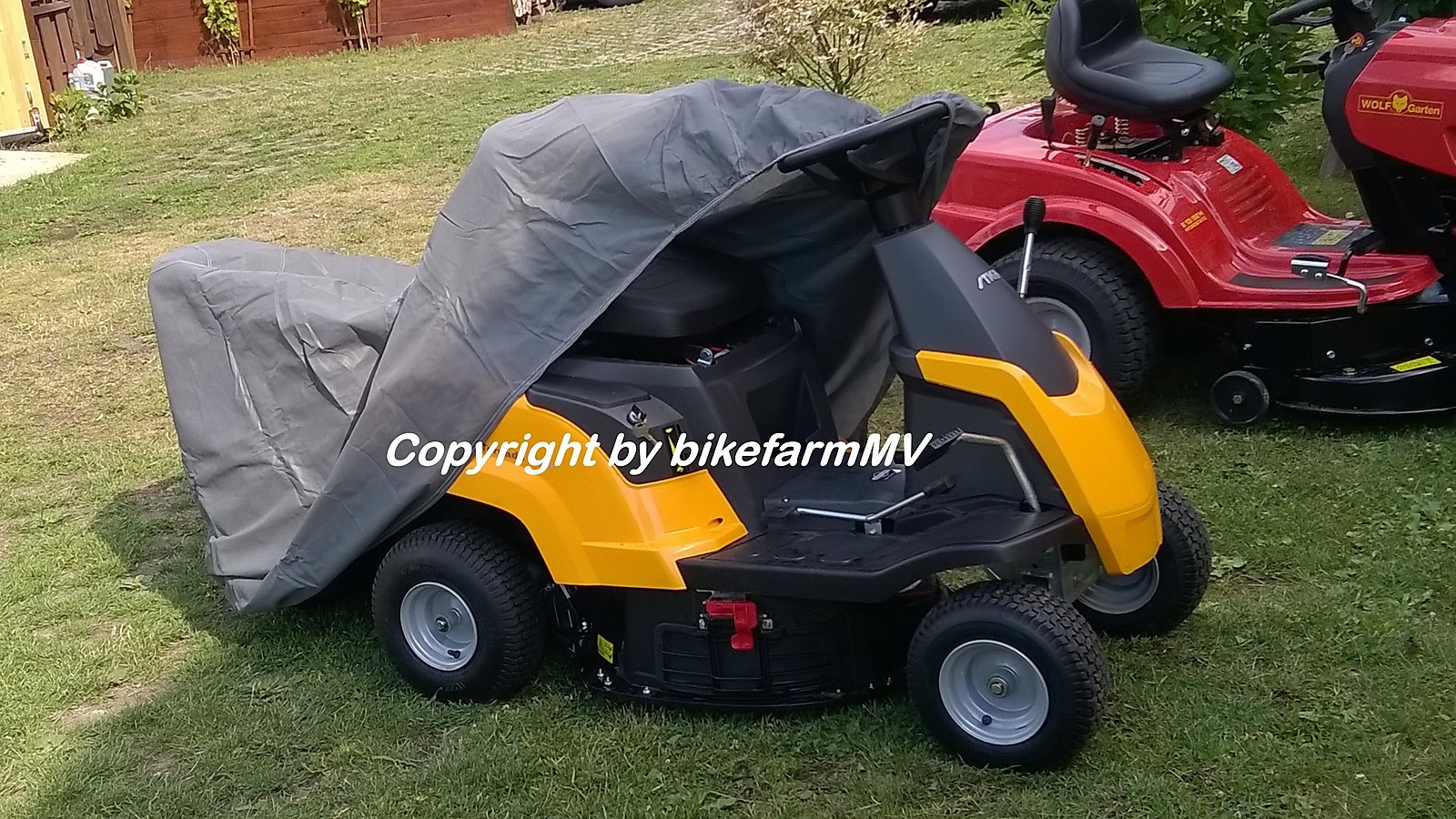 Dein Aufsitzmäher ist eine Investition - schütze ihn mit dieser hochwertigen Abdeckplane! Ob Regen, Sonne oder Staub, dein Mäher bleibt geschützt.\n\nTECHNISCHE DATEN:\n• Maße: 183 x 137 x 117 cm\n• Material: 420D Oxford-Gewebe\n• Vollständig wasserdicht\n• UV-beständig\n\nBESONDERE FEATURES:\n• Reflektierende Streifen für bessere Sichtbarkeit\n• Winddichter Verschluss - fliegt nicht weg\n• Seitliche Belüftung gegen Kondenswasser\n• Inklusive Aufbewahrungstasche\n\nPASST FÜR:\n• Die meisten Marken von Aufsitzmähern\n• Rasentraktoren bis 137 cm Höhe\n\nEinfach über deinen Mäher stülpen, den Gurt festziehen und schon ist er sicher geschützt. Die reflektierenden Streifen sorgen nachts für Sicherheit - niemand stolpert mehr über deinen Mäher!\n\nMit 12 Monaten Garantie - kümmern wir uns um dich, damit du dich um deinen Garten kümmern kannst.