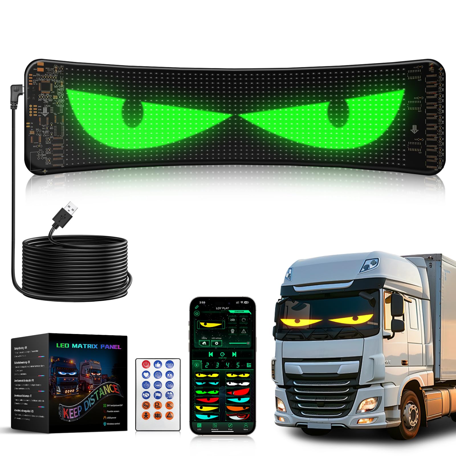 Willst du dein Auto oder deine Party aufpeppen? Diese LED Devil Eyes sind mega cool! Du kannst per App oder Fernbedienung Texte, Bilder und Animationen anzeigen. Wasserdicht, flexibel und mit 4,5 m USB-Kabel. Einfach ankleben und loslegen! Ob an deinem Auto, im Geschäft oder zu Hause - es sorgt überall für Aufsehen. Mit 96x16 Pixeln und vielen voreingestellten Modi. Du bist der Boss - stell ein, was dir gefällt! Und falls was nicht klappt, hilft unser Support. Also, worauf wartest du? Mach die Nacht bunt!